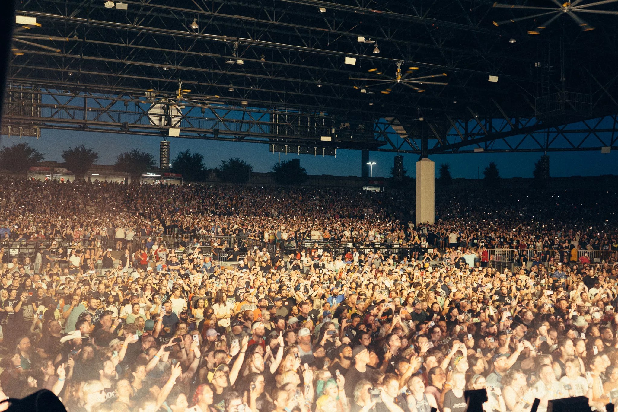 Fans braved the sweltering triple-digit temps on Wednesday evening and headed to Dos Equis Pavilion for Fall Out Boy’s So Much for (Tour) Dust concert, in honor of the emo powerhouse’s eighth studio album, So Much (For) Stardust. Historic Fair Park’s outdoor amphitheater can accommodate about 20,000 concertgoers, and it was virtually bursting at the seams from the floor all the way up to the lawn for this highly anticipated lineup. Unfortunately, we left our black gel bracelets and fishnets at home because it was just too damn hot, but everyone else understood the assignment and showed up in their best emo garb ready to sweat it out in the pit.