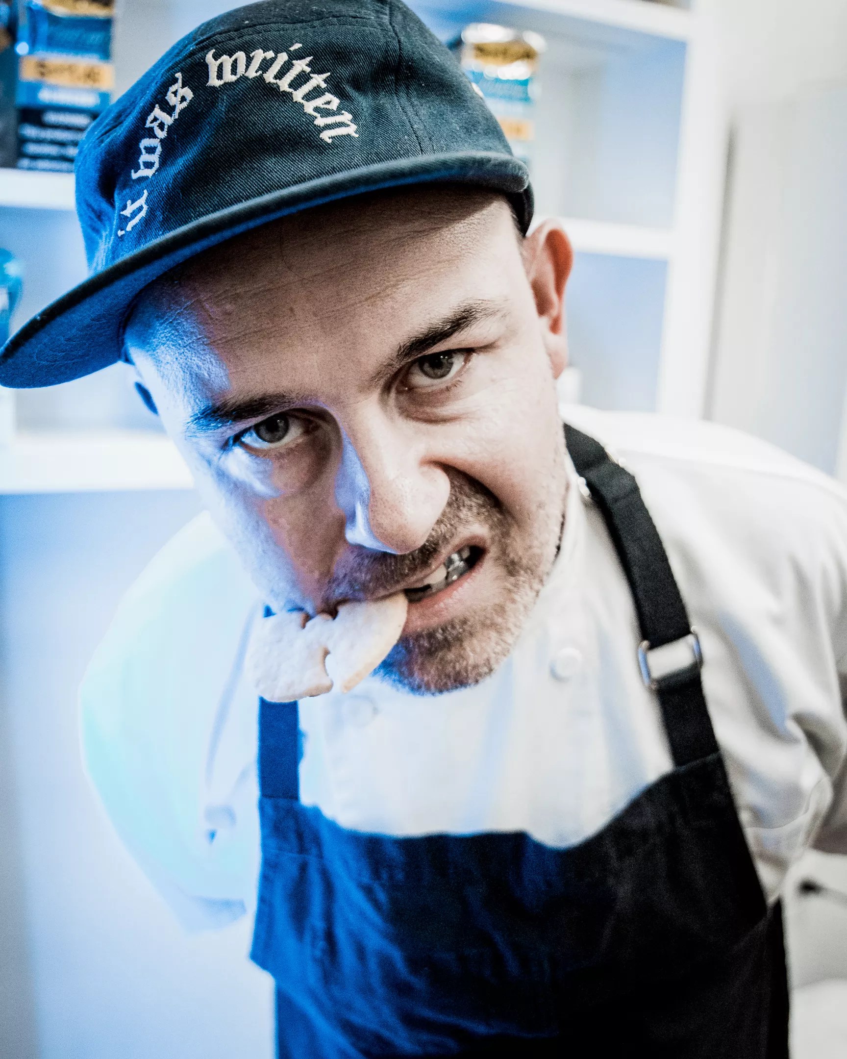 The VIP party moved next door after it became uncomfortably hot in the store. There, chef Justin Box was whipping up a four-course meal consisting of a beet and wild greens salad, risotto, a corn bisque with aquafaba ‘mallow fluff, and a dessert that paid homage to the man himself: Wu-Tang shortbread cookies he’d whipped up the night prior.