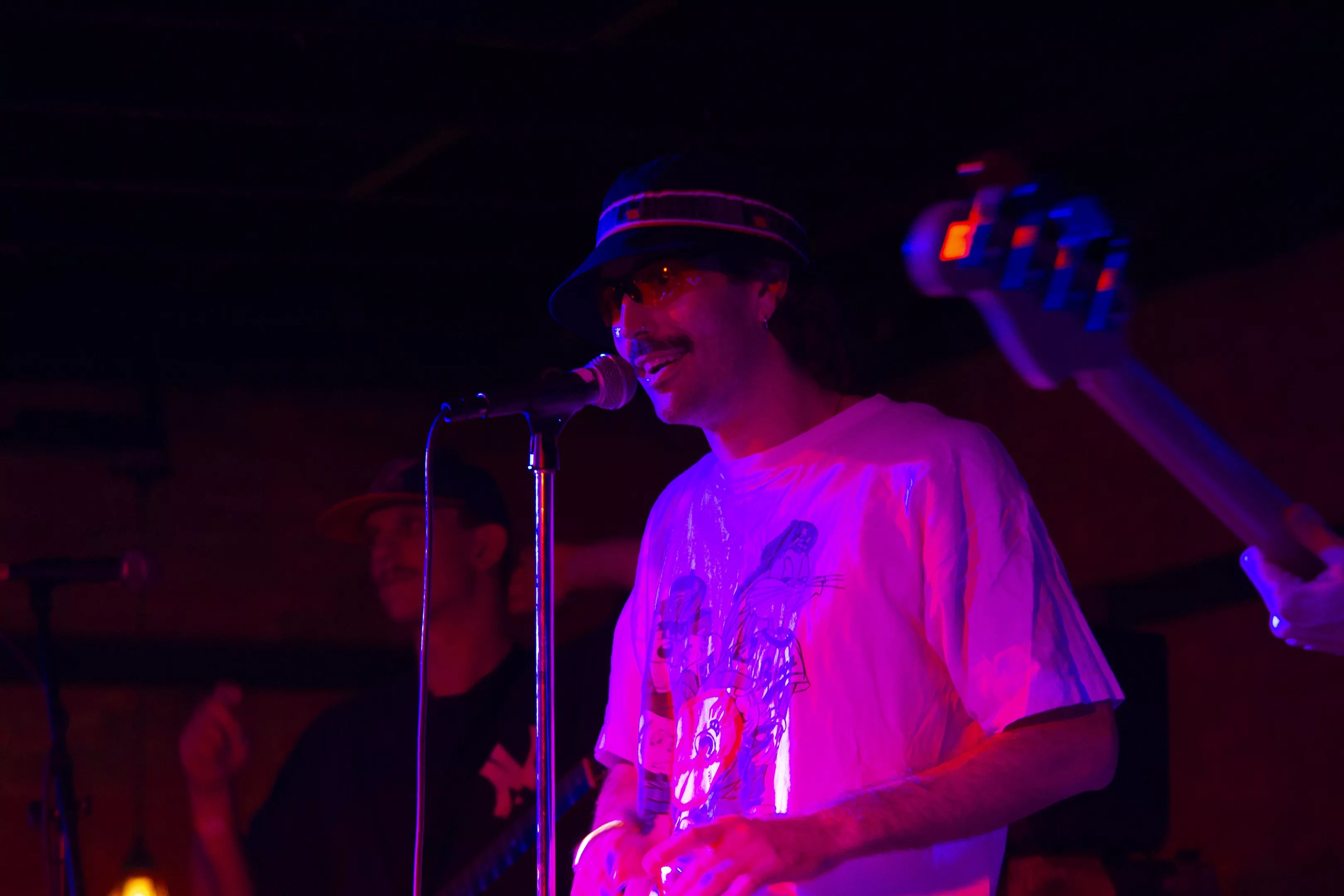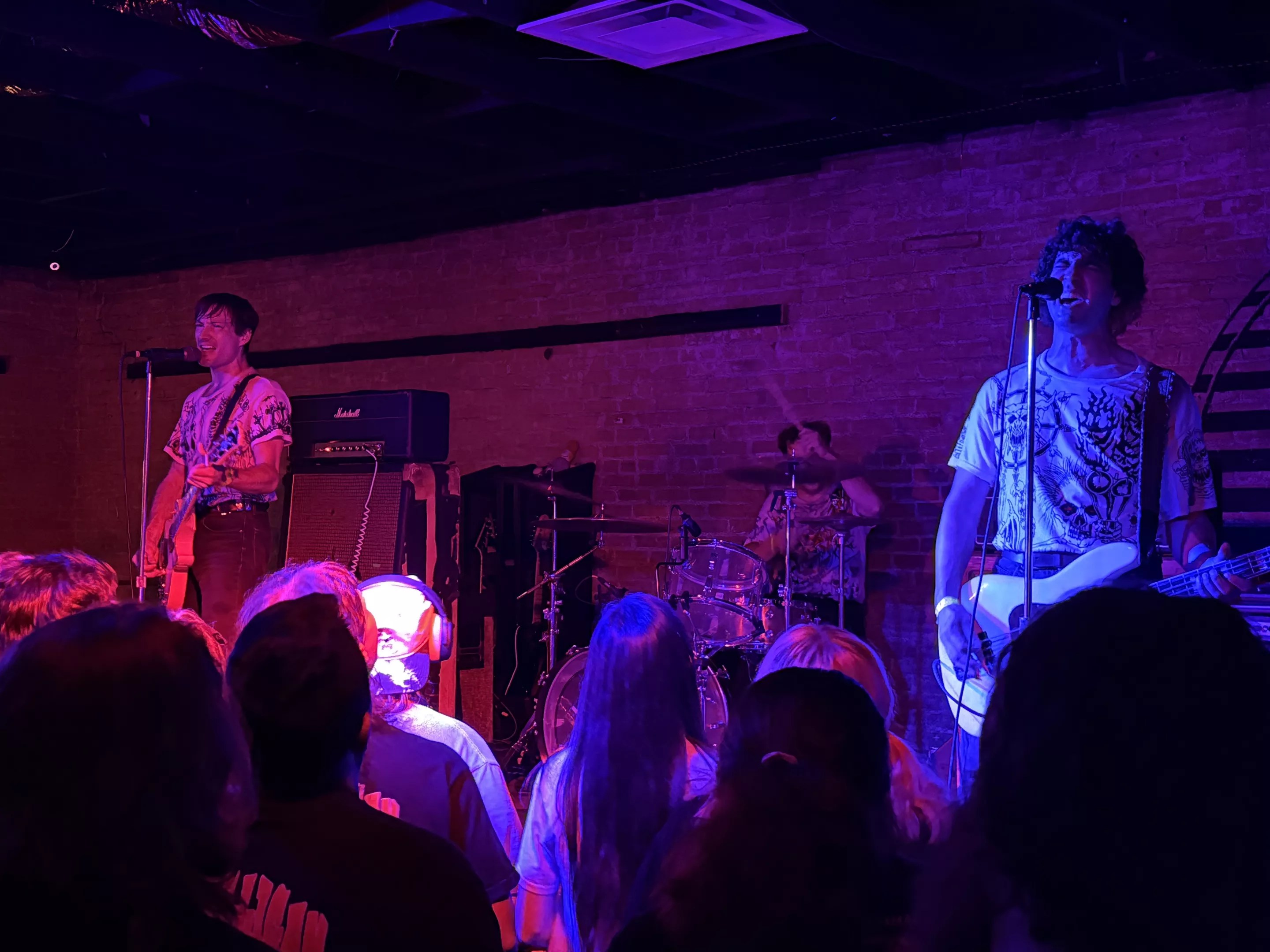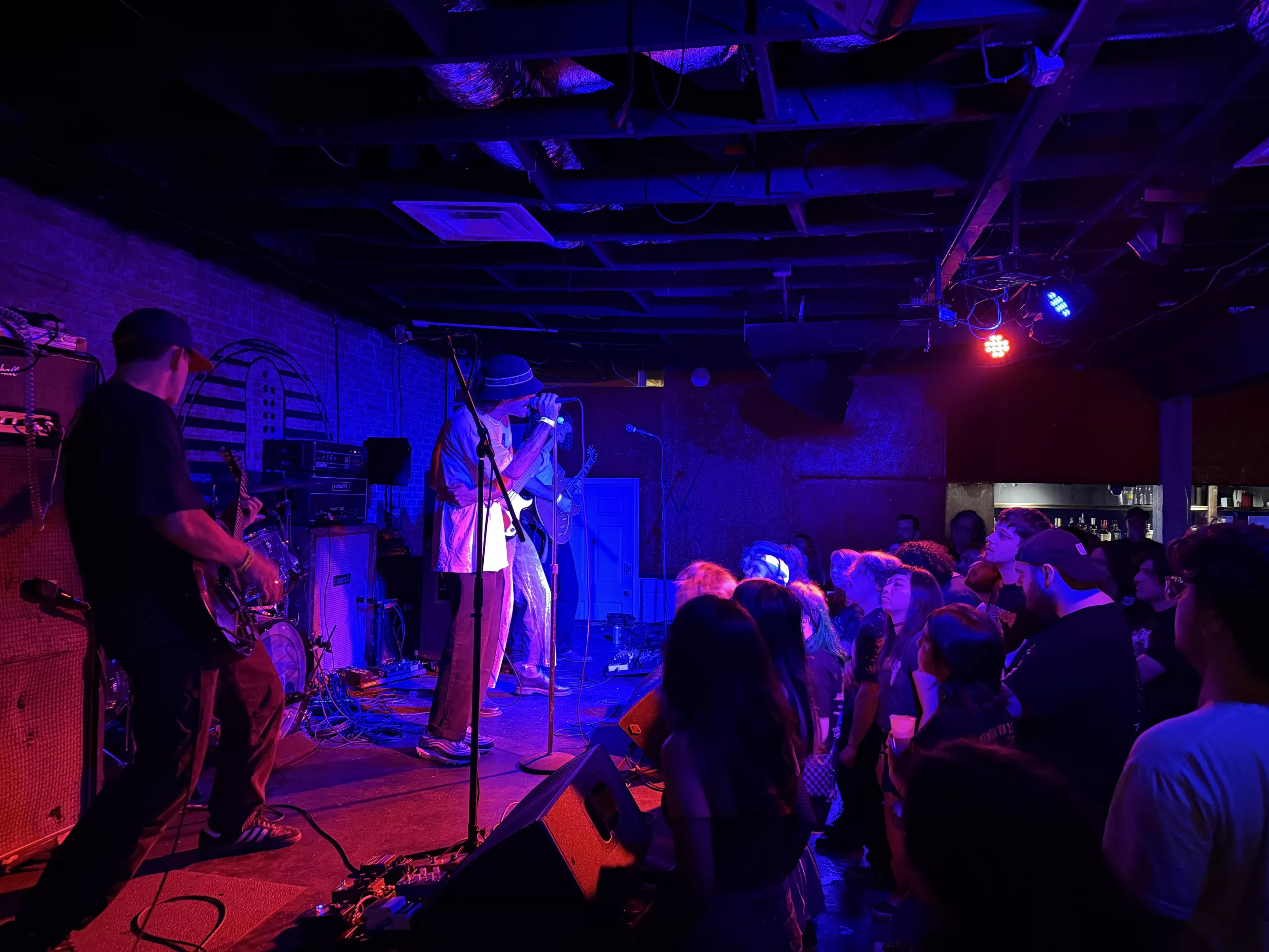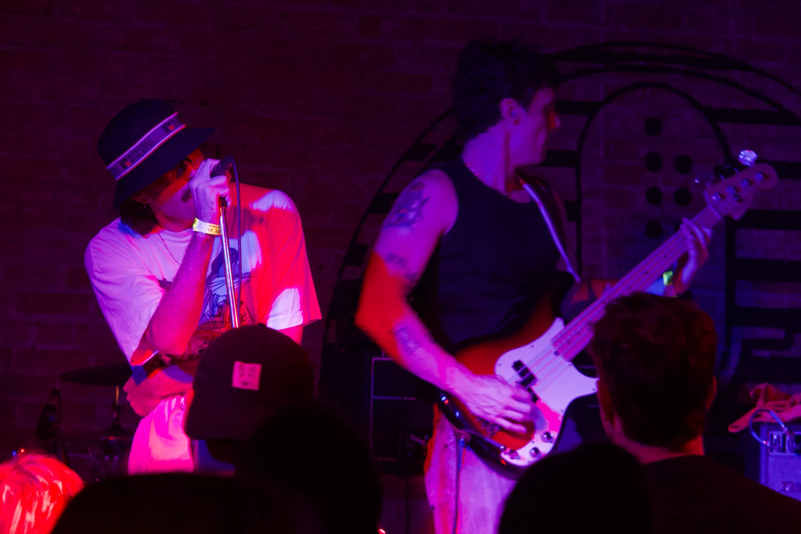 Tuesday, Aug. 5, RBC in Deep Ellum felt less like a venue and more like a time capsule of punk rock chaos. The tucked-away Dallas bar, with its dimly lit, no-fuss aesthetic-gear huddled in corners, walls blemished with ladders and only a sliver of outside light squeezing through the front door-set the stage for a night as gritty as it was enthralling. Heart Attack Man’s Joyride the U.S., & Toronto & Also Vancouver Tour made its pit stop here, bringing together an international punk quartet that left the crowd sweaty, sore-throated and wanting more.