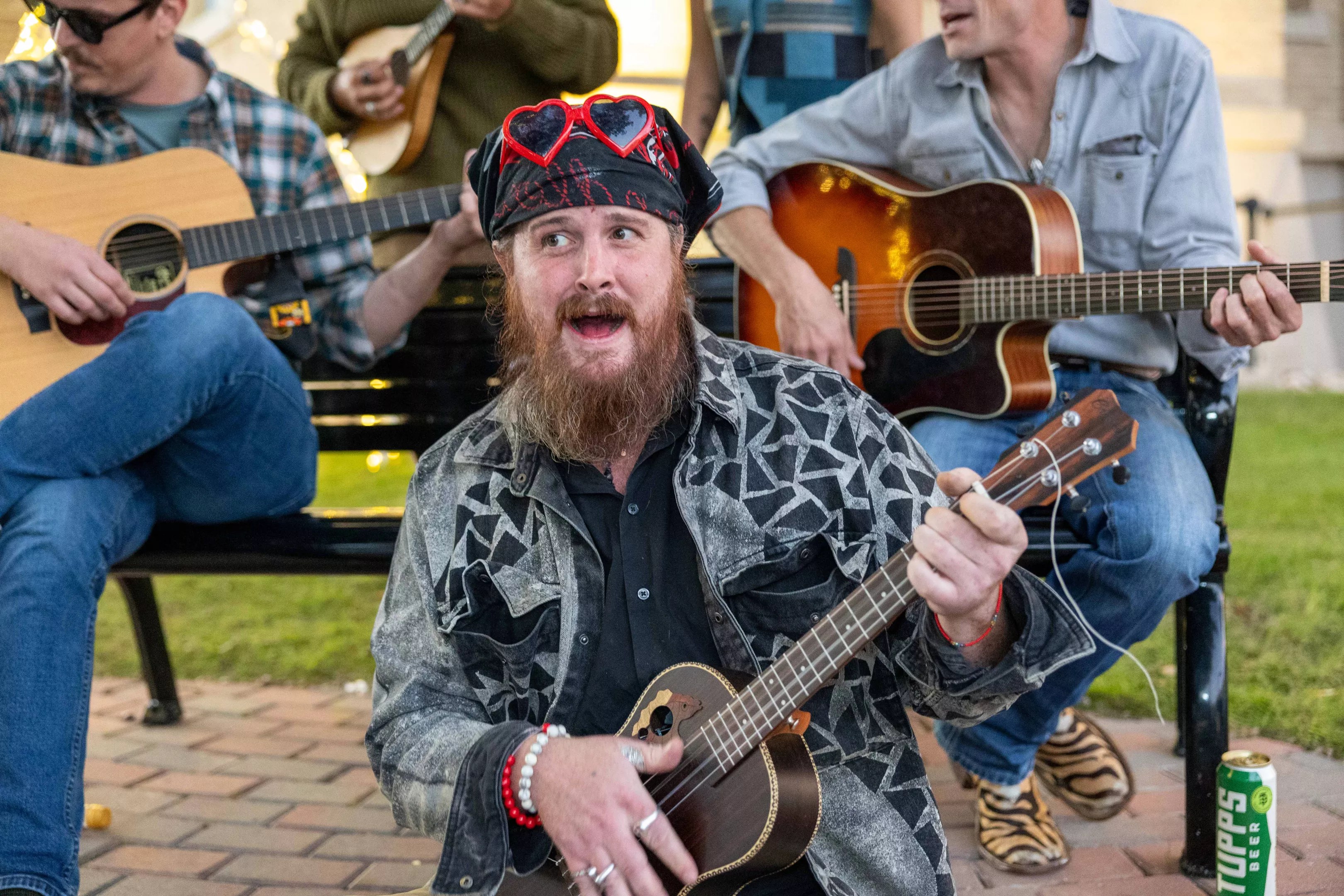 On weekends, Hause and Mize unite with fellow buskers in the area to form something of a street supergroup. They play mostly originals, save for a “Wagon Wheel” or two when the moment calls for it. Not surprisingly, the moment soon did, and a young man named Luke couldn’t help but take the third verse himself while on a lunch break from his job building greenhouses up the road.