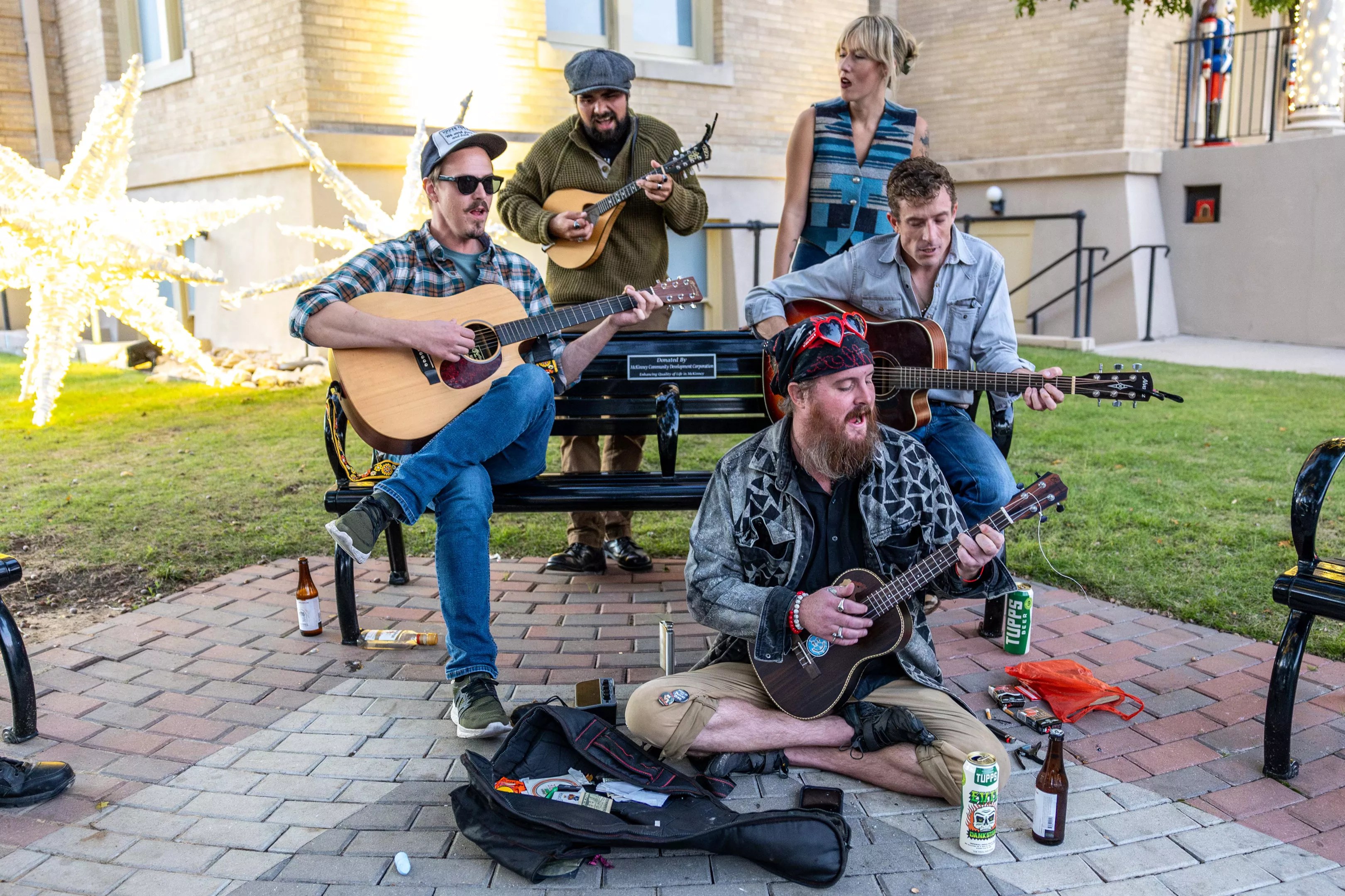 On weekends, Hause and Mize unite with fellow buskers in the area to form something of a street supergroup. They play mostly originals, save for a “Wagon Wheel” or two when the moment calls for it. Not surprisingly, the moment soon did, and a young man named Luke couldn’t help but take the third verse himself while on a lunch break from his job building greenhouses up the road.