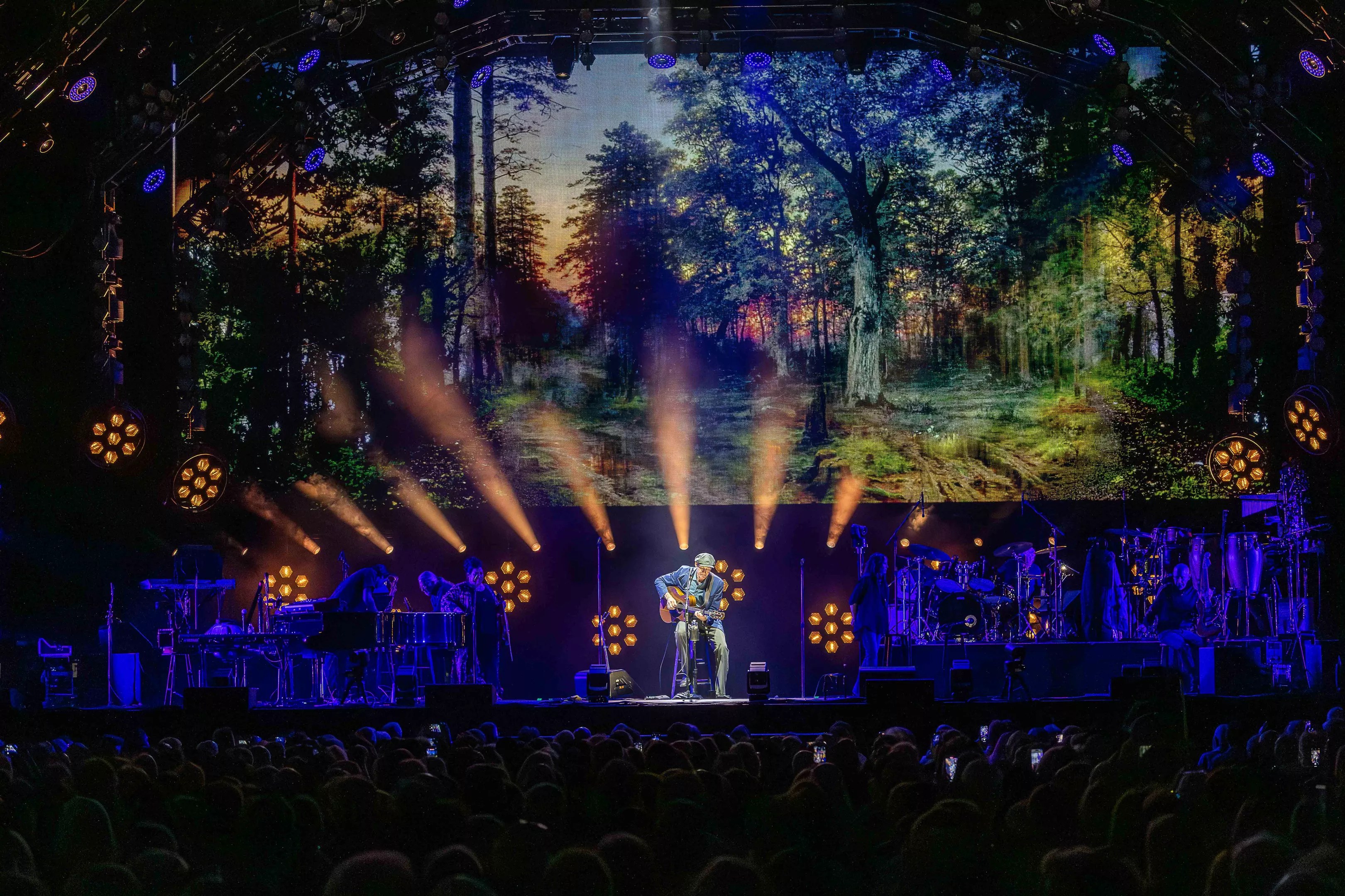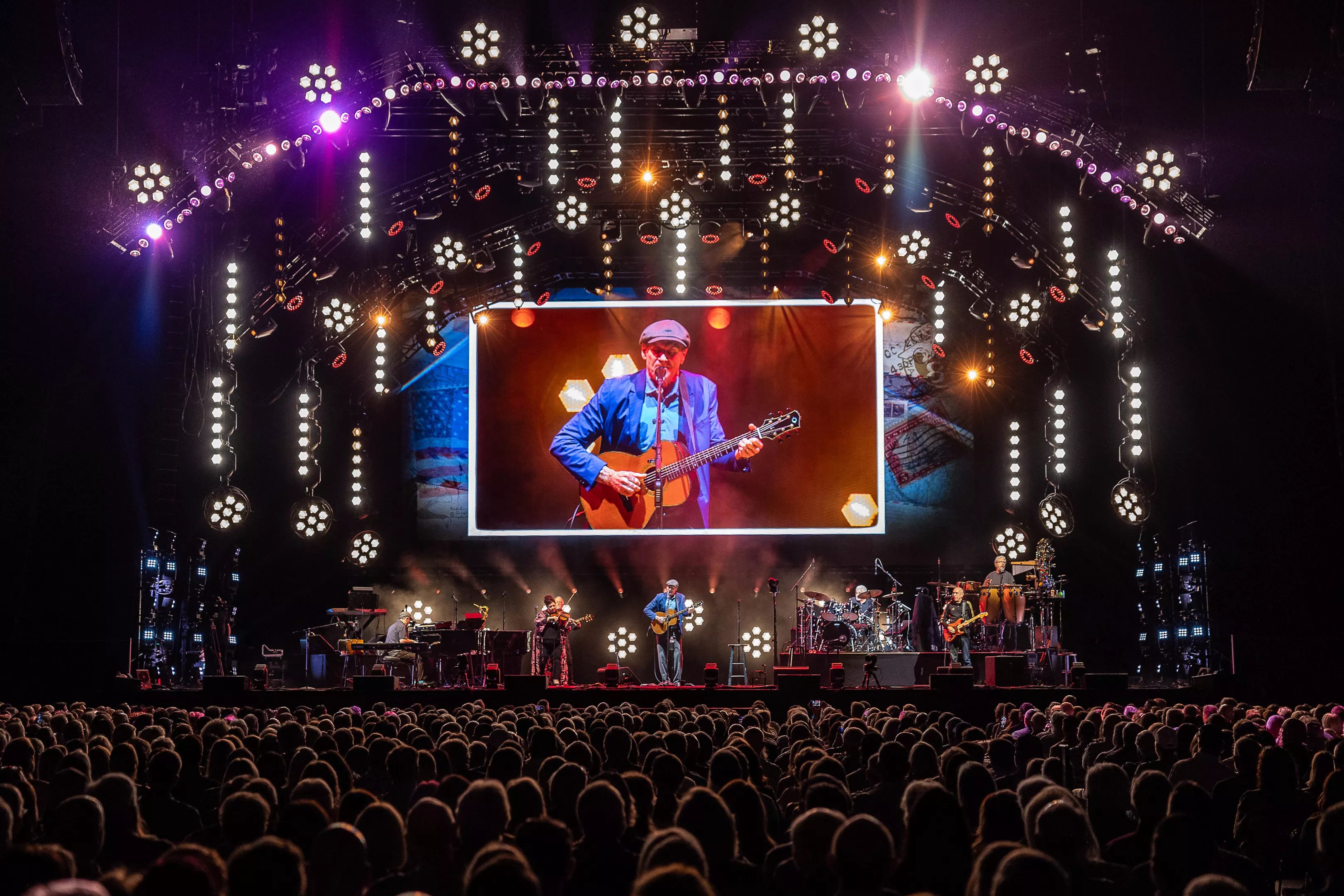 Taylor’s performance and presence were charming as he had a calm and conversational tone throughout the set. He introduced many of his songs as either traveling songs or destination songs, which made sense for someone who has toured for over 50 years. It was almost like he was addressing friends in his living room and responded in kind when fans yelled out, “We love you.” He was gracious, introducing not only his band members (his All-Star Band) throughout the evening but also his stage crew, which further speaks to what a class act he is. His setlist was more like a hit list with some deep Taylor cuts mixed in.