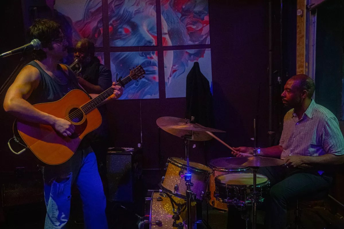 Vahala took the stage first with trumpeter Charles Mills and Justin Hoard on drums. The host’s light baritone voice washed over the room as Mills’ notes soared atop his acoustic strumming. Vahala wrapped his set with a song from the perspective of Lee Harvey Oswald telling his wife he only had one thing he needed to do before making it to dinner – a sick premise that could only be born from a mind like Vahala’s.