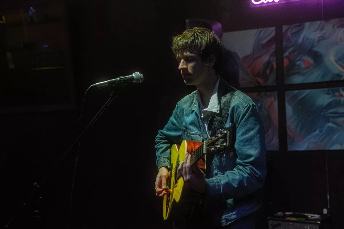 One musician walked in wearing a blue denim jacket and sat quietly with his guitar in his lap, applauding for others and patiently waiting his turn to play. Once his name was called, Aaron Shipley stood up and put on an electric performance with fervent strumming and an earnest vocal delivery.