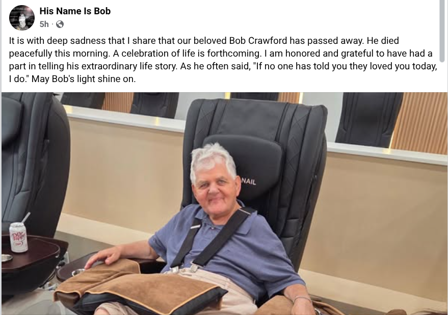 His Name Is Bob was directed by Lisa Johnson Mitchell, who also confirmed his passing in her Instagram Stories.