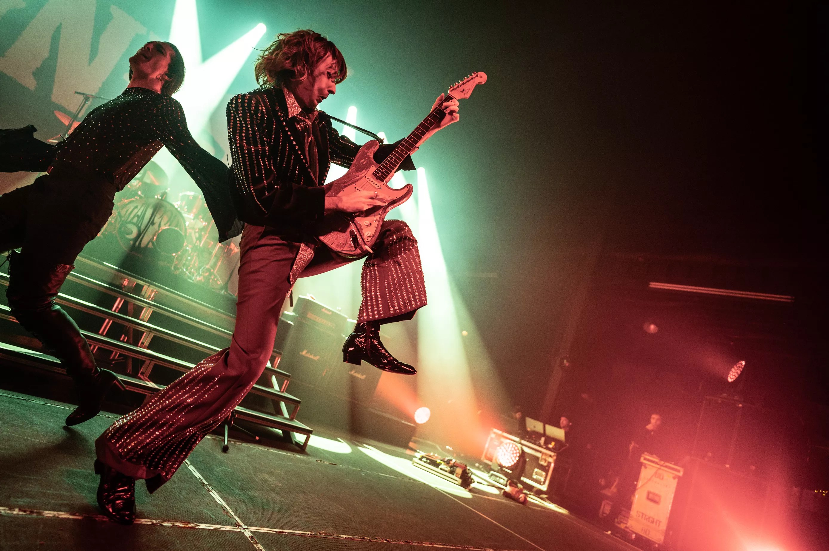 As the band walked off the stage at the end of an almost 2-hour set, the house lights stayed down and the sold-out crowd was in no mood to leave. After several minutes, a single spotlight came up and guitarist Thomas Raggi stepped into the pool of light and began a 5-minute solo that morphed into “The Loneliest,” a stadium-worthy rock ballad filled with soaring guitar parts. That was followed by the hit “I Wanna Be Your Slave.” Then, finally, the audience was allowed to leave.