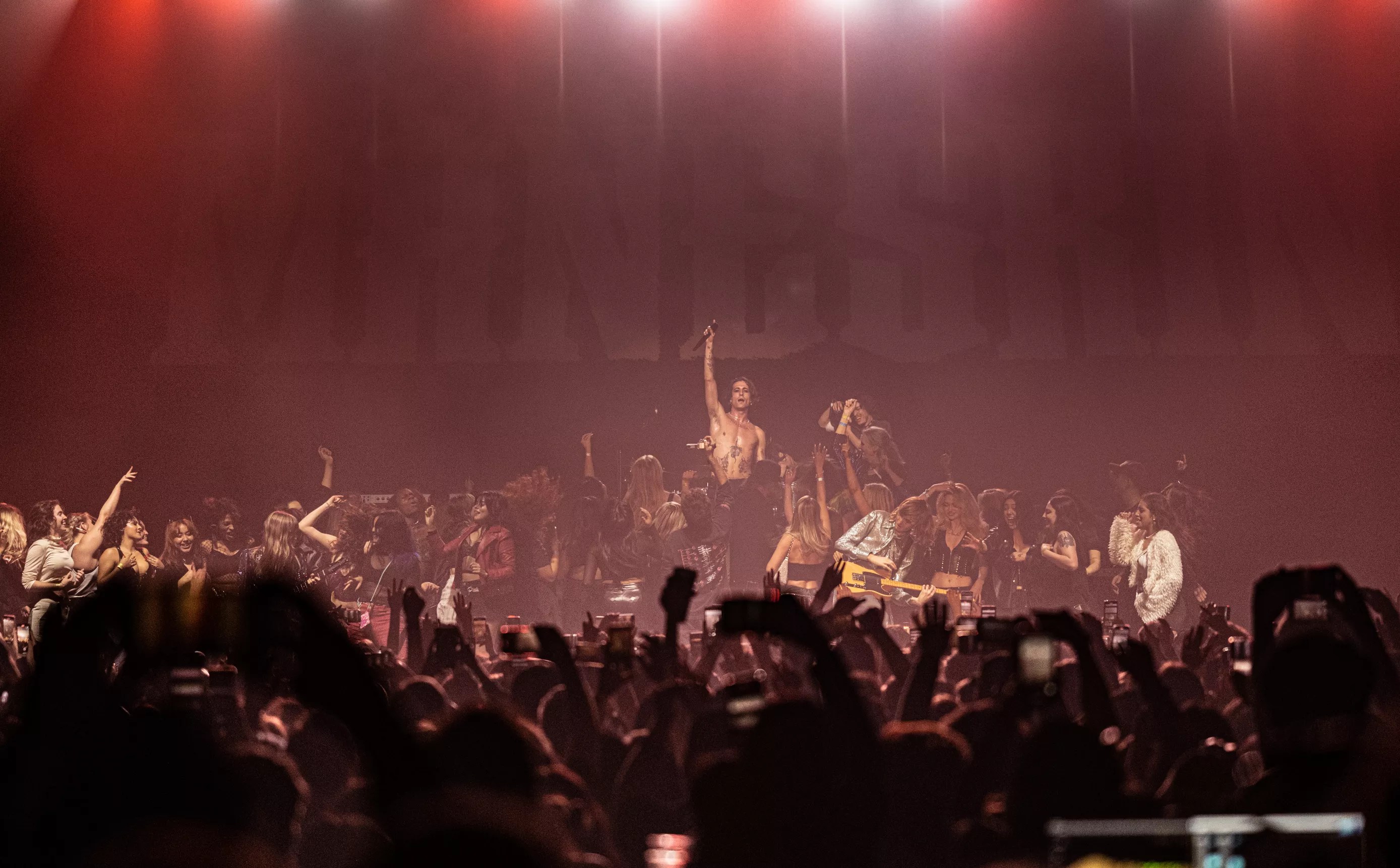 There was a line well before show time. It started outside the venue, went down the street and then folded back into the parking lot. People who got there an hour before doors opened found themselves several hundred yards away from the metal detectors. It gave me time to talk to a few of them. They were from Dallas, Austin, New Orleans, North Carolina and Oklahoma. This was their one chance to see Maneskin, and they were not going to pass it up. Almost universally, they all found out about the band by watching the competition show Eurovision Song Contest.