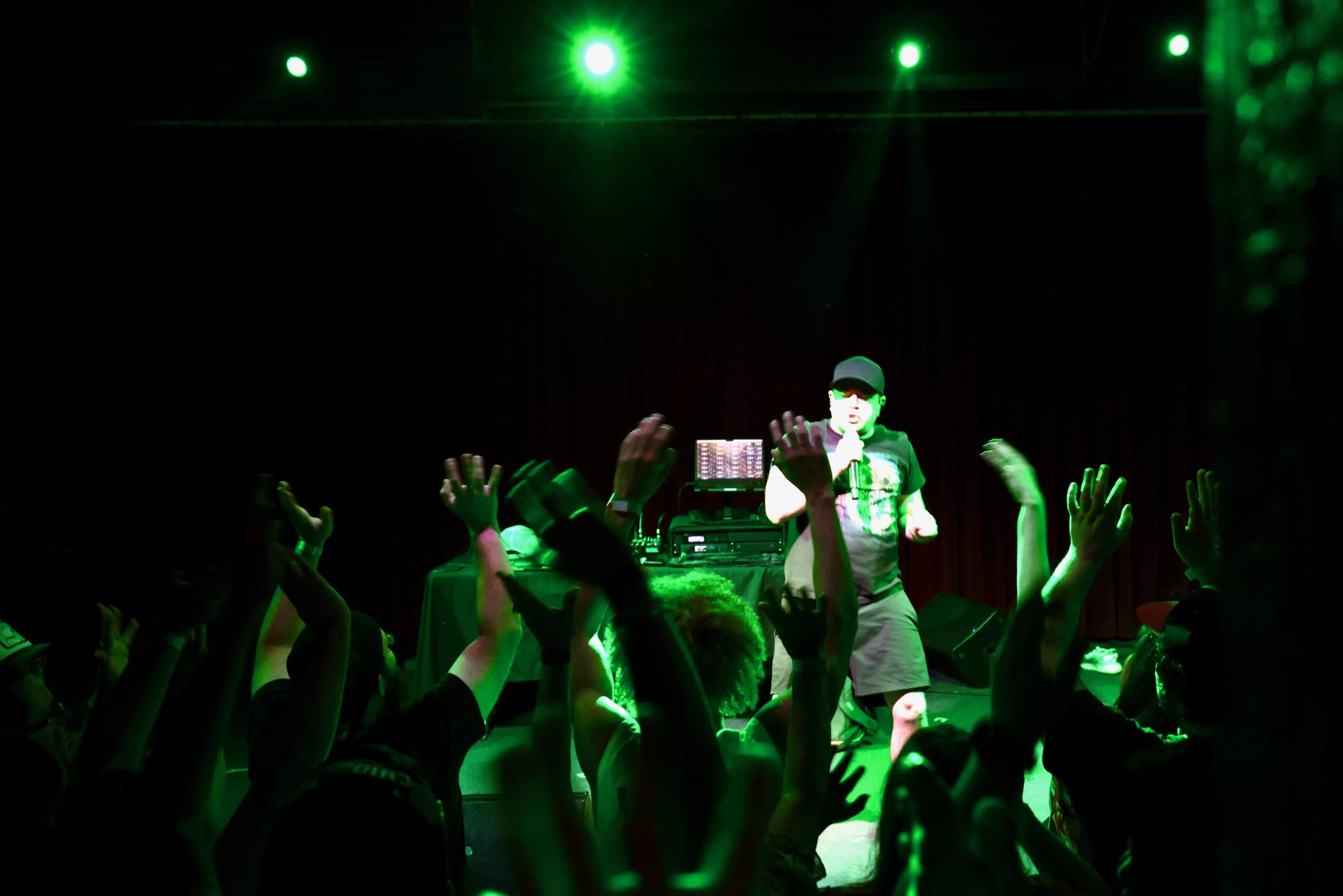 Their cheering and screaming sounded like a crowd triple the size of the first second MC Chris took the stage and announced the show’s setlist would be entirely fan-chosen. Leading off with “The Tussin” from Life’s a Bitch and I’m Her Pimp, as it was the loudest request, Chris could’ve been easily drowned out by the entire crowd singing every single word on beat. Other classics that were chosen from the crowd’s screams were “DQ Blizzard,” “Nrrrd Grrrl,” “Hoodie Ninja” and Aqua Teen Hunger Force‘s “I Want Candy.”