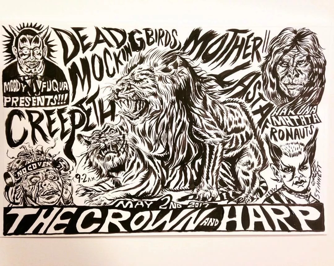 Inspired by comic books and movie posters, Clay Stinnett has highlighted the passion of many local bands through his artwork. Stinnett regularly does designs for Parade of Flesh, a Dallas-based booking agency, and he has taken on projects for well-known acts like Fort Worth rock band the Toadies. At 19, Stinnett began his artistic career drawing thousands of illustrations a week as a caricature artist. “One of the most influential experiences, jobs I had was when I was 19, I worked at Six Flags Over Texas doing caricatures for two years,” Stinnett says. “That definitely, definitely kind of sealed the deal on my technique.” Stinnett is a Fort Worth native and has showcased some of his work at Texas Theatre and the Dolly Python.