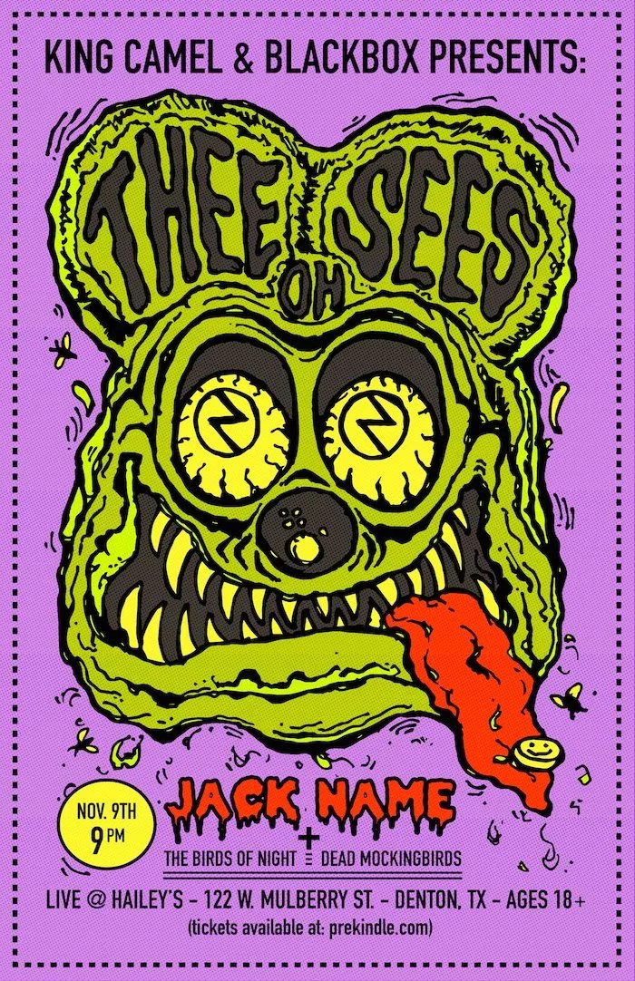 When he is not whipping out jams for his homegrown garage-rock band Loafers, Taylor Smith is plastering his creativity in the form of print design all over Deep Ellum. Inspired by Brian Schroeder, better known as Pushead, a logo designer best known for his works with Metallica, Smith began flexing his own drawing muscles and has designed for music groups based all over the country. Thee Oh Sees, Parquet Courts, Natural Child, Jacuzzi Boys, Audacity and The Coathangers are all on his resume. Smith graduated from Baylor University with a degree in graphic design and has been designing concert posters for almost five years. He is currently creating art for his record label, Barf Wave Records, and along with recording music, he plans to continue designing posters for other artists.