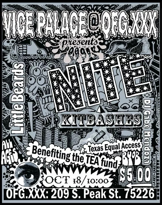 Some artists have a flair that remains a bit mysterious, wallowing in the music scene’s underbelly. Larry Carey’s work can be seen in Dallas-Fort Worth’s musical underground. A vigilante for all those committed to the DIY ethos, he has worked with some of Dallas’ most high-energy bands hidden from the mainstream. “I’m always for that sort of underground, noisy kind of aspect of what’s going on, and it’s fun for me to be involved,” Carey says. He first started doing professional work for psychedelic-metal band Hawk Vs Dove, and he has crafted many projects for Vice Palace, a Dallas-based cassette label. Carey is originally from New Jersey, and his poster art began in the early ’80s, when he first started making designs for his band Glass Onion. He moved to the Dallas area as a teenager and graduated from the University of North Texas with a bachelor’s degree in fine arts. Since his arrival, Carey has worked with bands both weird and wild, and has stroked his magic for local musicians across town.