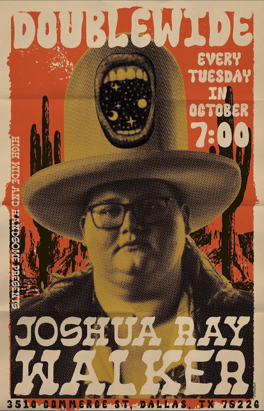 From the early concert posters commissioned by country and blues musicians from Nashville’s 140-year-old Hatch Show Print to the imagery currently crafted by Lewellyn’s Print Shop in Deep Ellum, album covers and flyers have conveyed a three-dimensional vision in a two-dimensional space. In Dallas alone, iconic visuals define artists in many genres, including Charley Crockett, Abraham Alexander and Joshua Ray Walker.