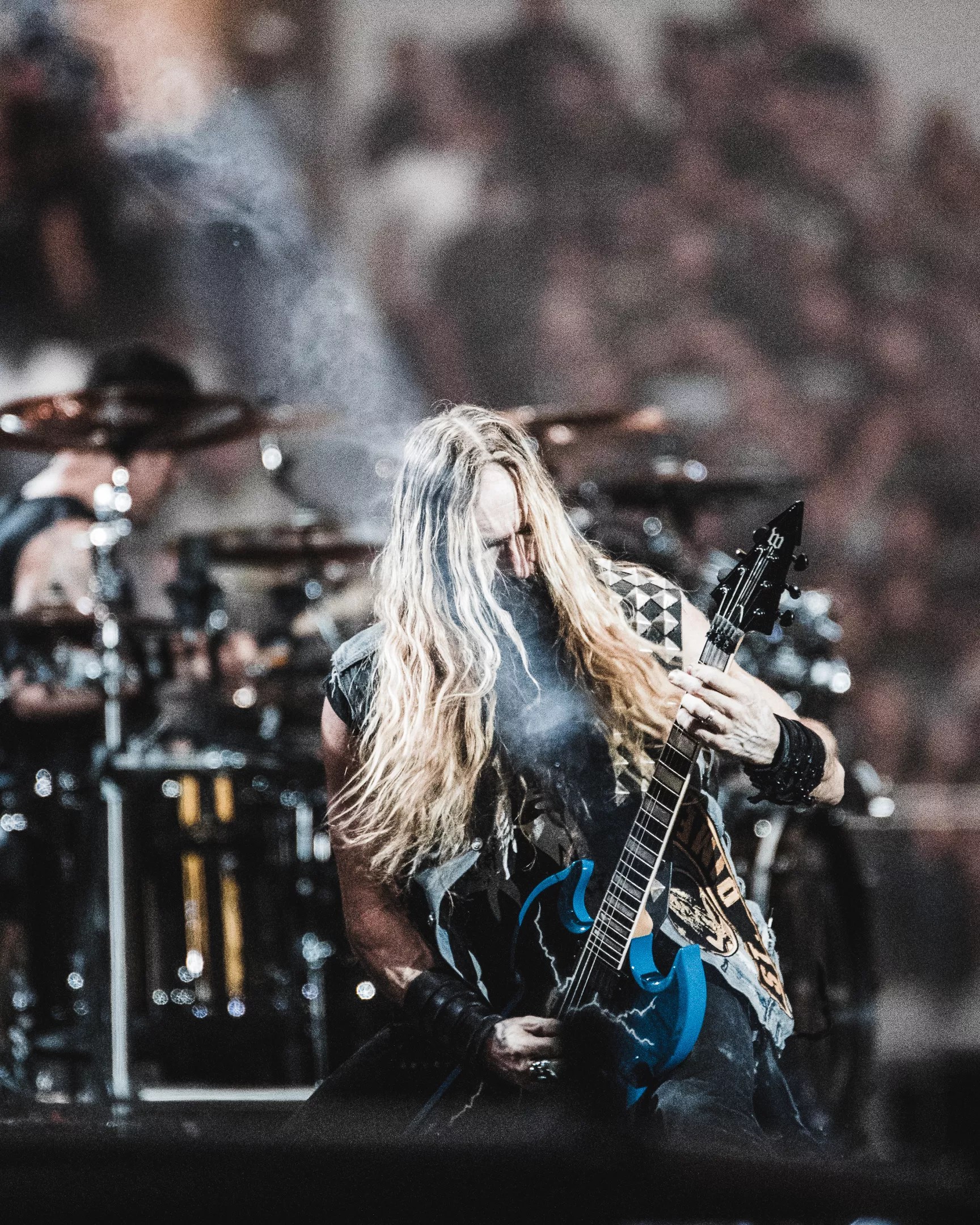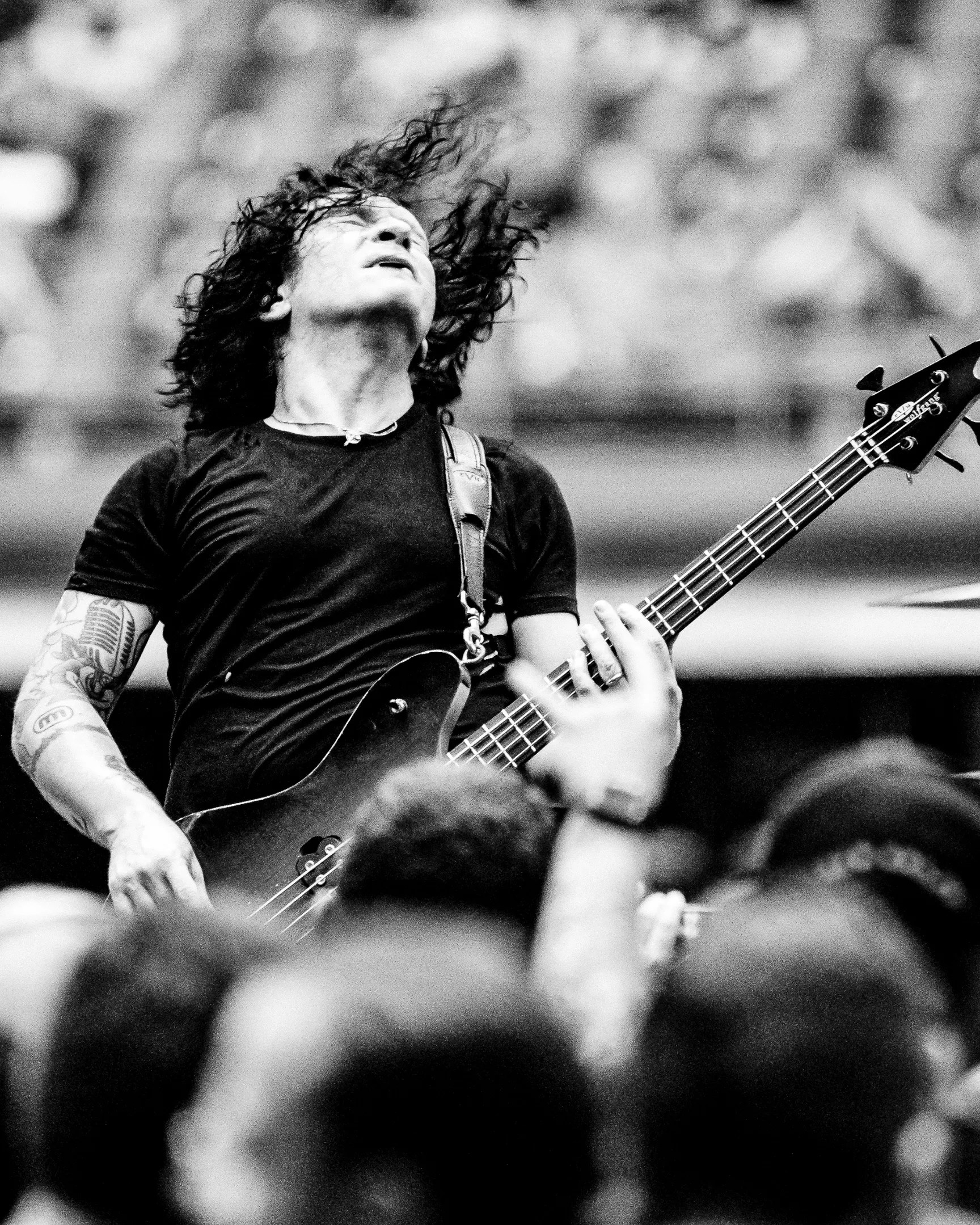 Wylde’s guitar, an homage to Darrell’s signature guitar, was complemented by Darrell and Paul’s faces on Benante’s kick drums. Anselmo dedicated “Strength Beyond Strength” to their memory. Wylde would switch to his own signature guitar later in the set among many others.