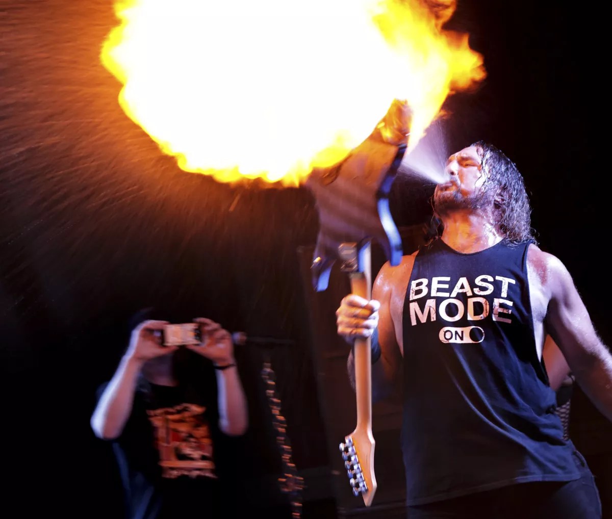 Scott Shelby ignites his guitar in more ways than one.