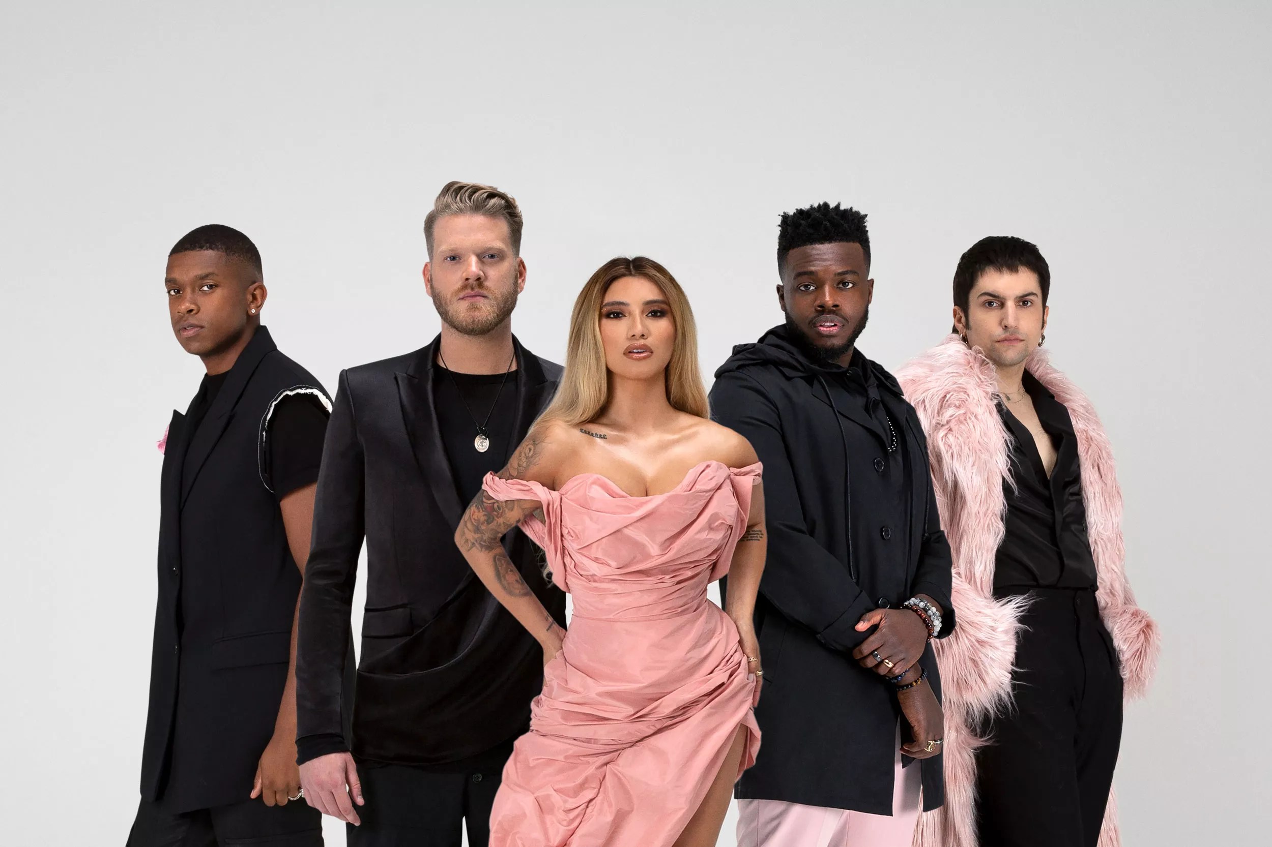 Pentatonix members Matt Sallee, Scott Hoying, Kirstin Maldonado, Kevin Olusola, and Mitch Grassi