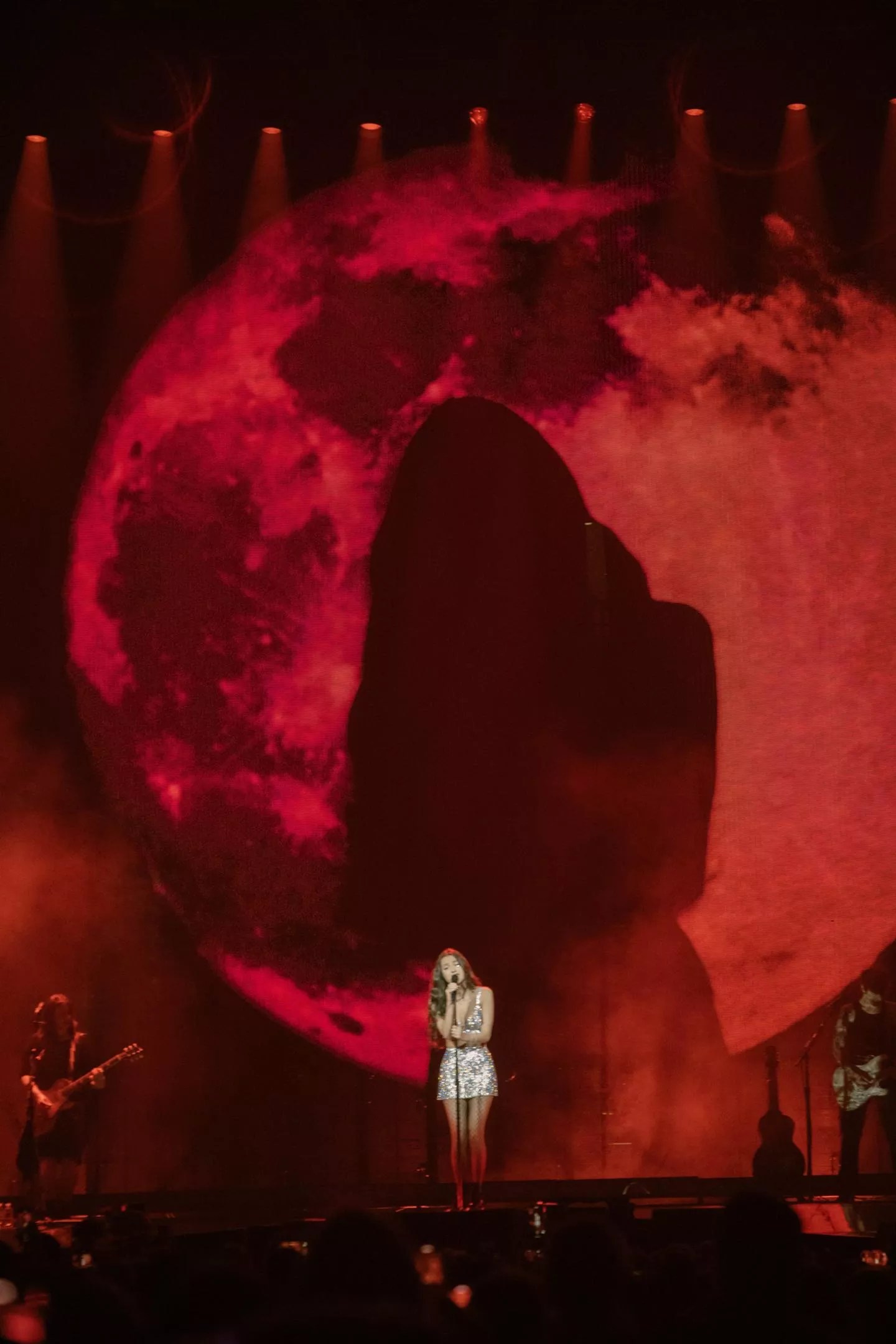 “Vampire” was performed against a blood-red moon.