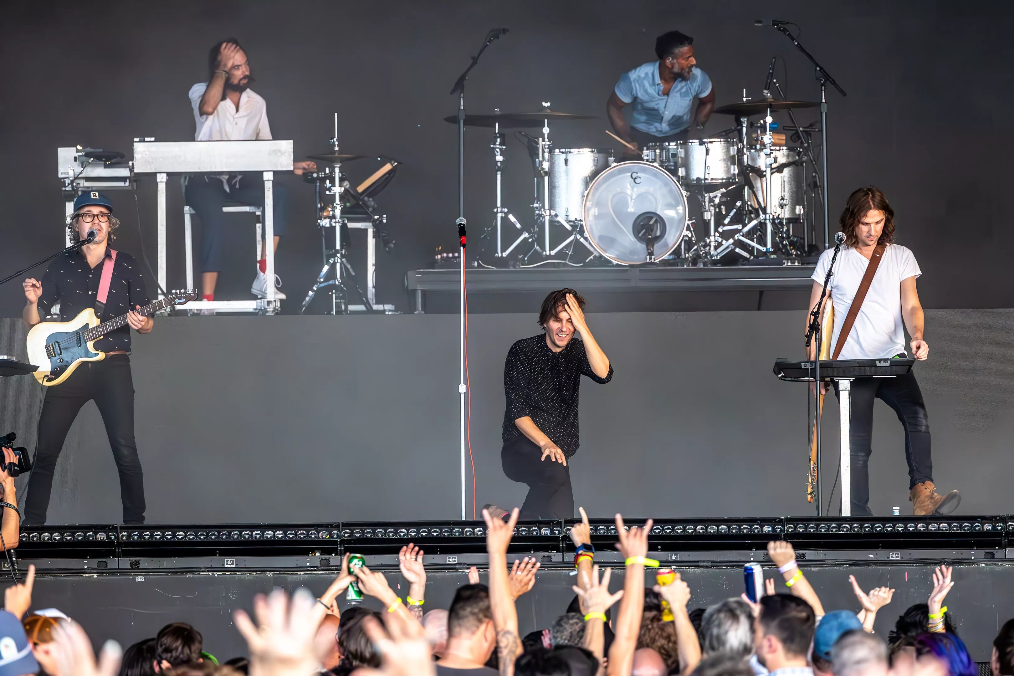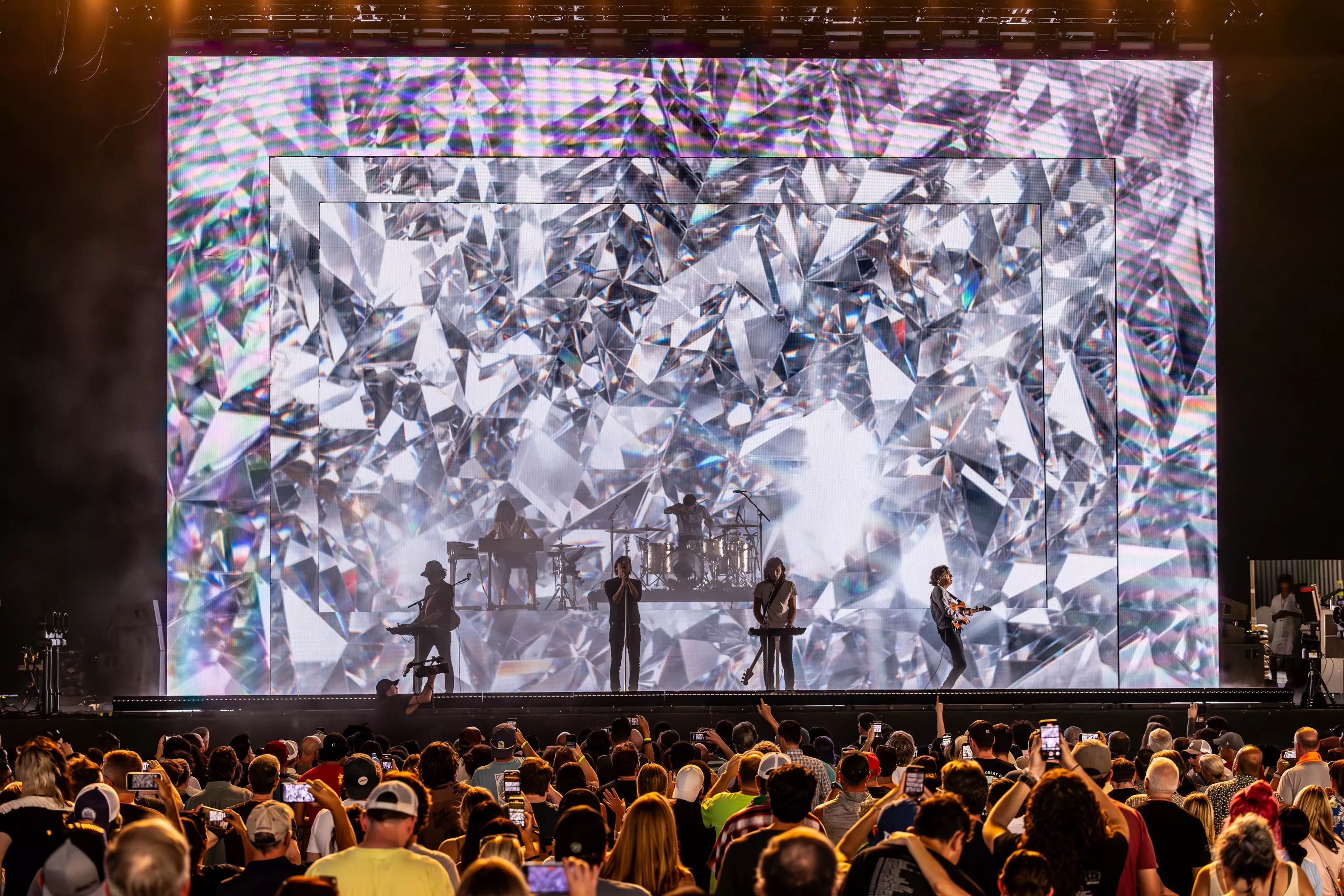 Once the sun was almost behind the back wall, the first headliner of the night hit the stage. Phoenix is one of the most successful French rock bands to break through in the States. They formed in ’95 and won a Grammy for Best Alternative Music Album with their breakthrough album Wolfgang Amadeus Phoenix. Although it took a little while for it to get dark enough, the lights and video show were outstanding.
