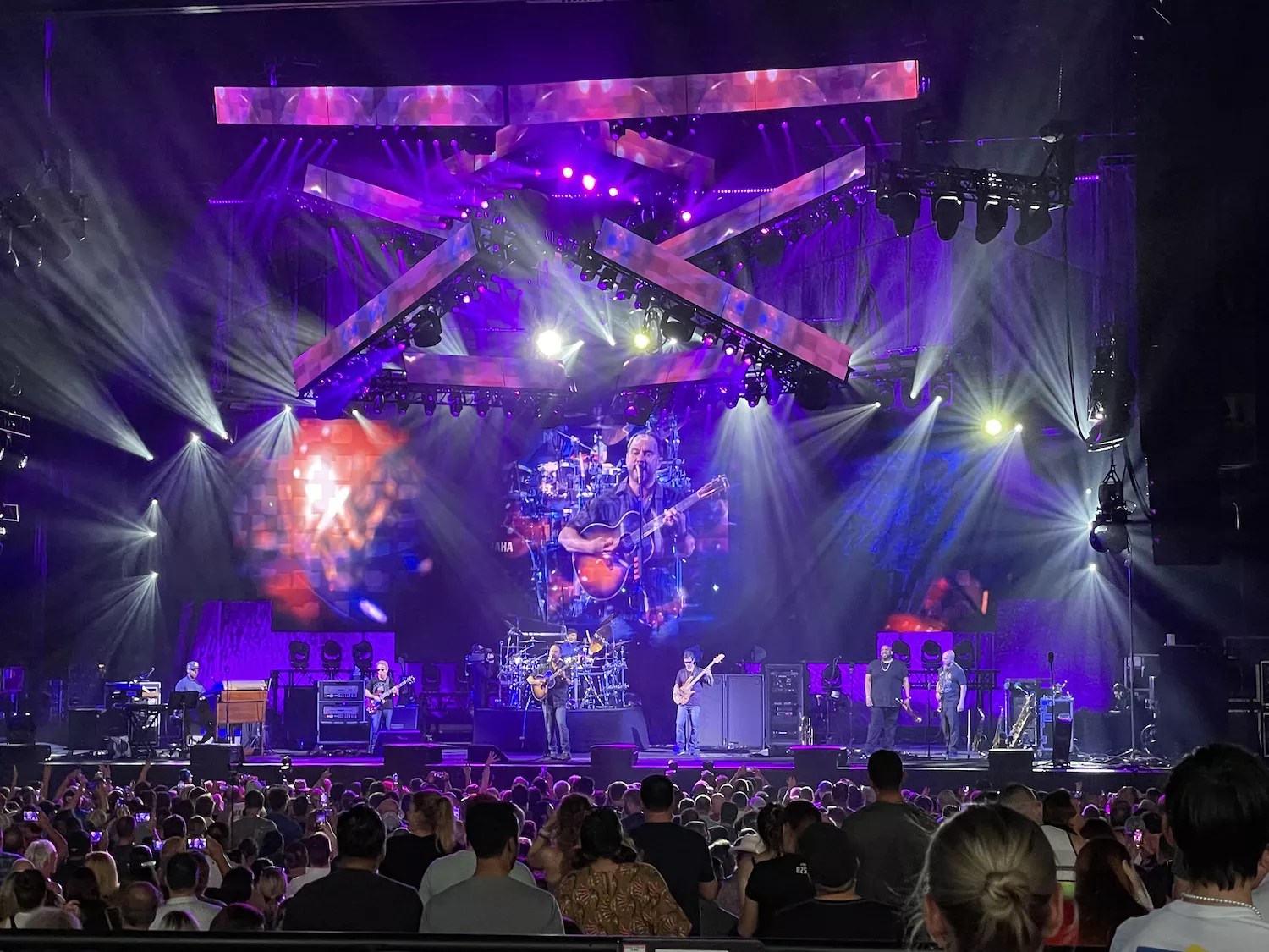 Under restless, dazzling lights and in front of the video screens arrayed behind them, the Dave Matthews Band reached as far back as 1993’s Remember Two Things (“The Song That Jane Likes,” “Satellite”) and as recently as 2018’s Come Tomorrow, the band’s latest studio album – all of it held together by Matthews’ eternally goofy stage banter: “I was wondering when that Ferris wheel’s turning,” he observed, gazing out beyond the pavilion lawn to Fair Park. “It seems to be standing still – which is fine for buildings or trees. Ferris wheels turn, but apparently not this one.”