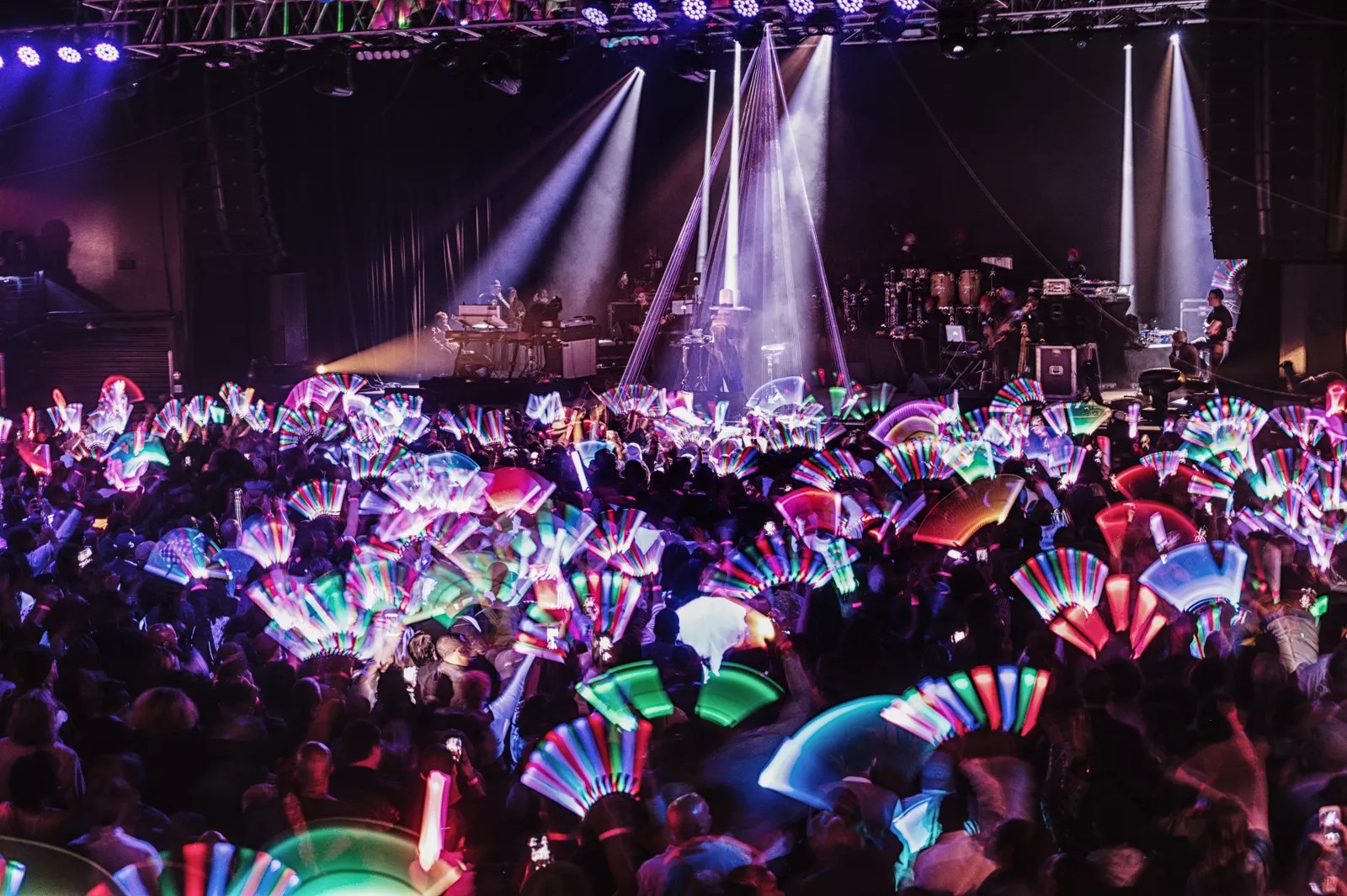Badu took off her hat and coat, now a high priestess in denim overalls, belting “Out My Mind, Just in Time” and “Window Seat.” She spun in place, singing simple rhythmic phrases like “Goddamn I’m dizzy.” She ululated while tribal dancing and dropped to the floor to a room full of people showing respect by moving their light sticks to the right beat.