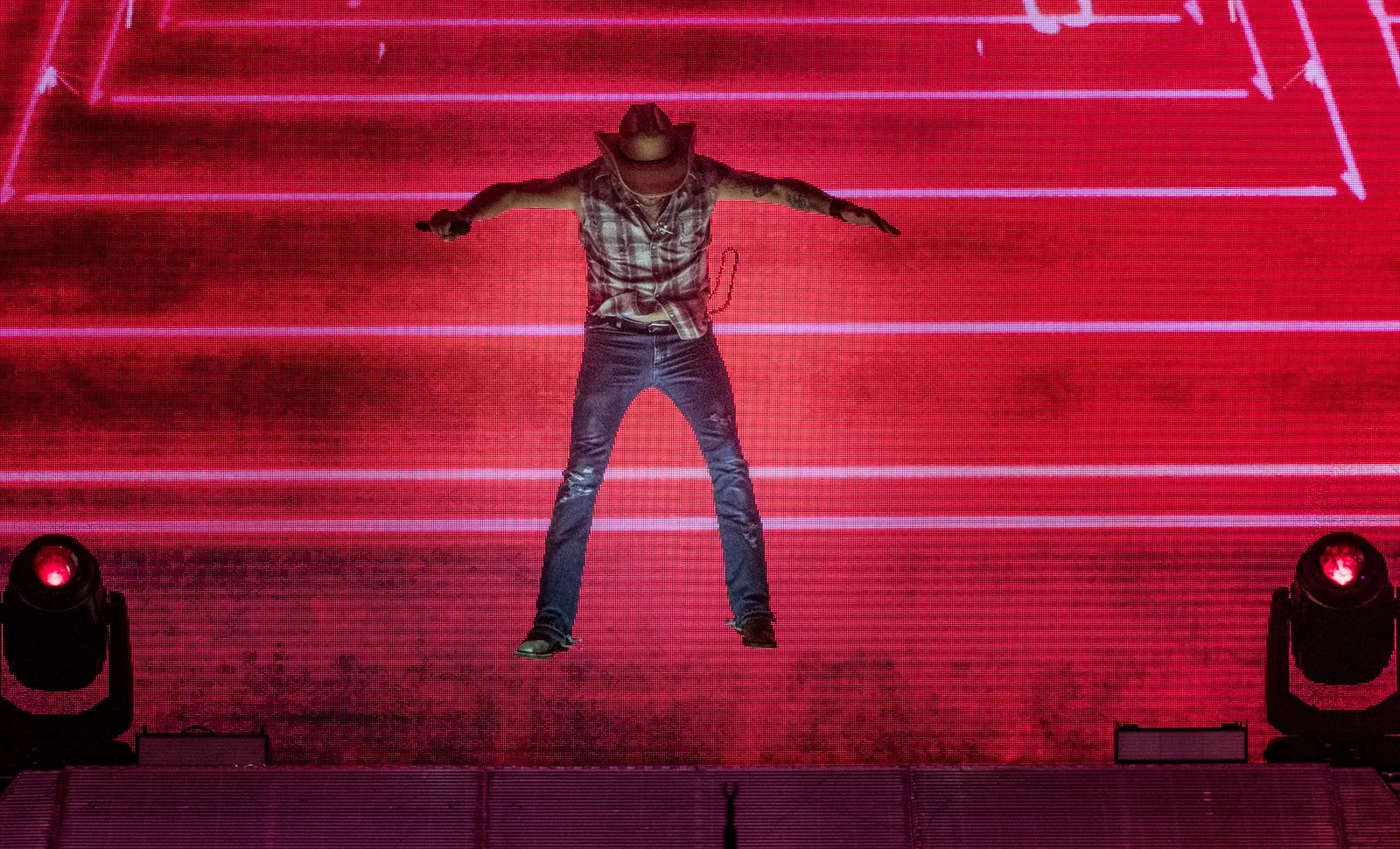 The audience was partying long before they made it into Dos Equis Pavilion to see country music star Jason Aldean for his High Noon Neon Tour on Saturday night. On the way to the entry line for the bag check, patrons were upending beers in one hand, a full beer on deck in the other hand. A woman at the metal detector station continued to insist she is always allowed to bring beer into the venue and considered this new policy unfair. Scalpers stood outside the grounds yelling their deals as groups congregated in shade openly drinking before stepping through the gates – the whole scene more akin to Bourbon Street than Fair Park.