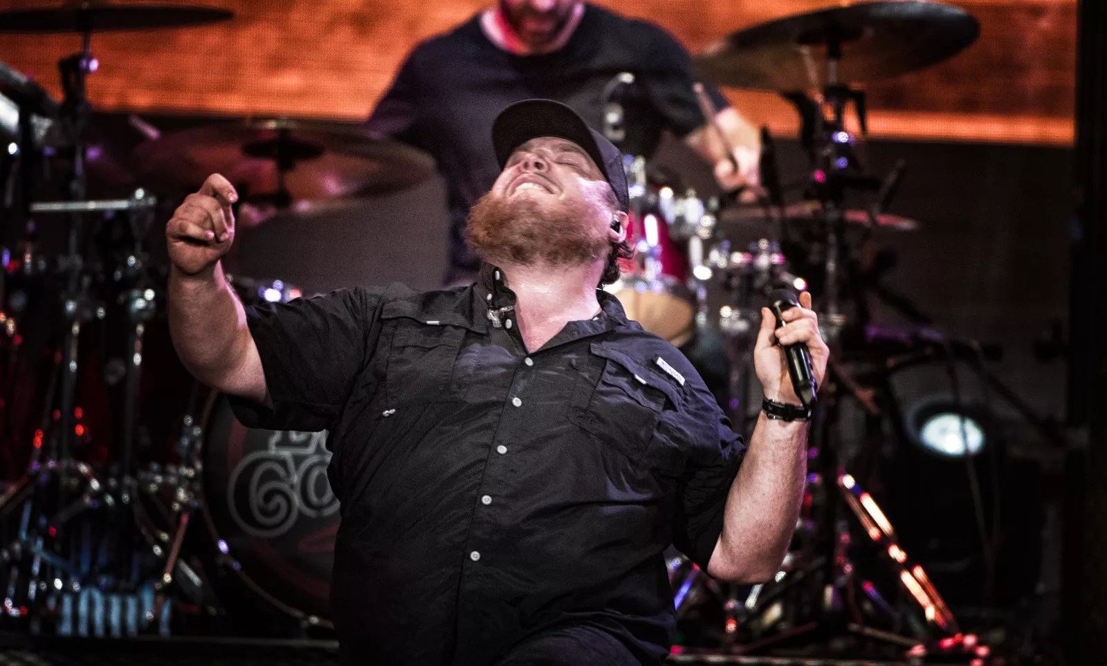 Aldean, wearing a signature low-tipped cowboy hat and sleeveless pearl snap shirt, moved steadily on the stage, pacing to give all of his fans moments to press harder and be closer to the stage. He gravitated continually to center stage, seemingly more at home and satisfied with planting himself in front of the mic.