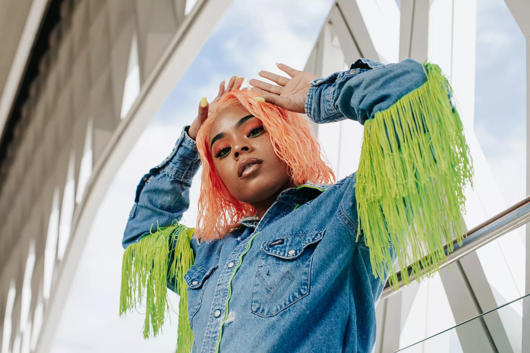 As 9:15 p.m. hits, Parx exits the green room, clad in a neon pink wig, denim button-up T-shirt, denim jeans and neon green fringe arm pieces.