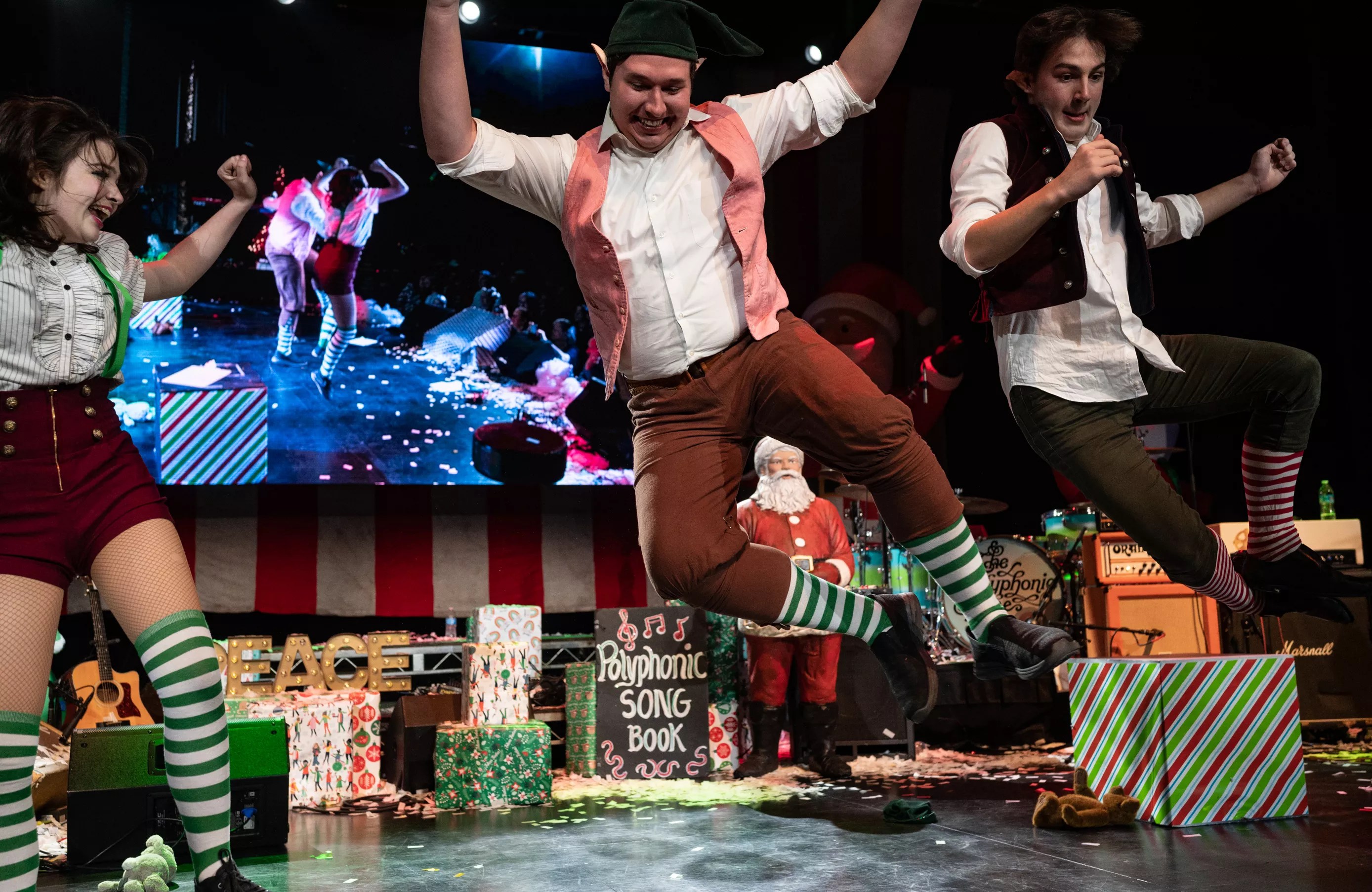 Chris Penn, Tim DeLaughter and the Polyphonic Spree hosted their annual pre-Christmas extravaganza and variety show on Saturday. Now in its 19th year, the event is filled with music, Christmas shenanigans, novelty acts and entertainers of all stripes. At around 10 p.m., the little ones are off to bed, the Spree change robes and a rock and roll show closes out the evening.