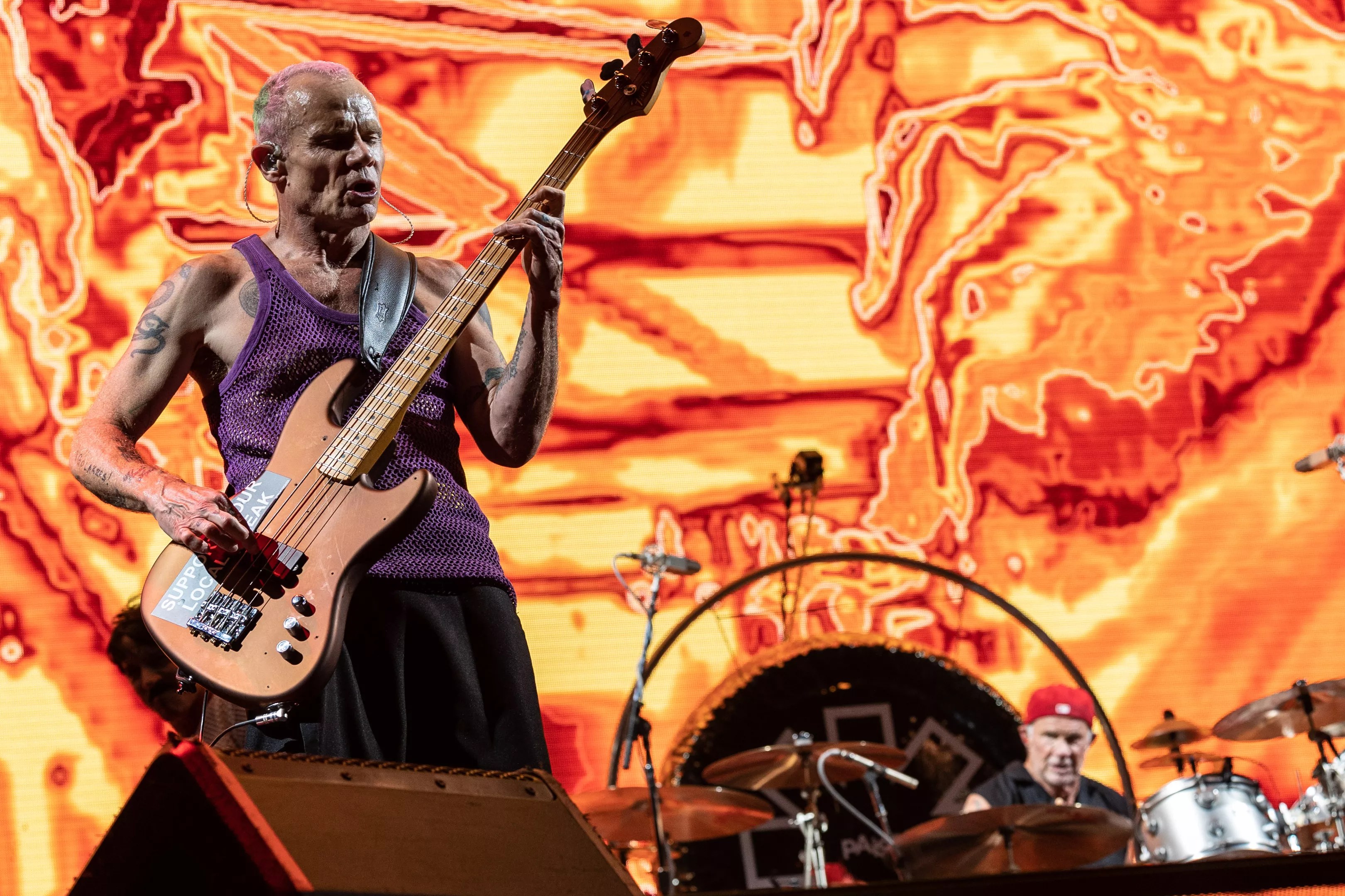 Bass player Flea was electric as ever on Sunday.