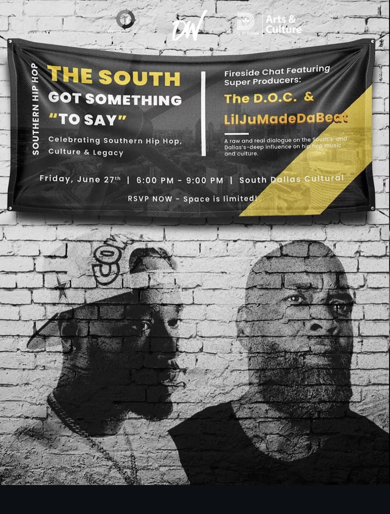 The event, titled “The South Got Something to Say,” had legendary producers The D.O.C. and LilJuMadeDaBeat as panelists to break down the South’s impact-especially Dallas-on the sound and soul of hip-hop. Two hip-hop legends gathered in Dallas for “an unforgettable evening celebrating Dallas’ deep roots and rising influence in Southern hip hop.” The sold-out event was filled with Dallas hip-hop heads and lovers of the culture at the South Dallas Cultural Center.
