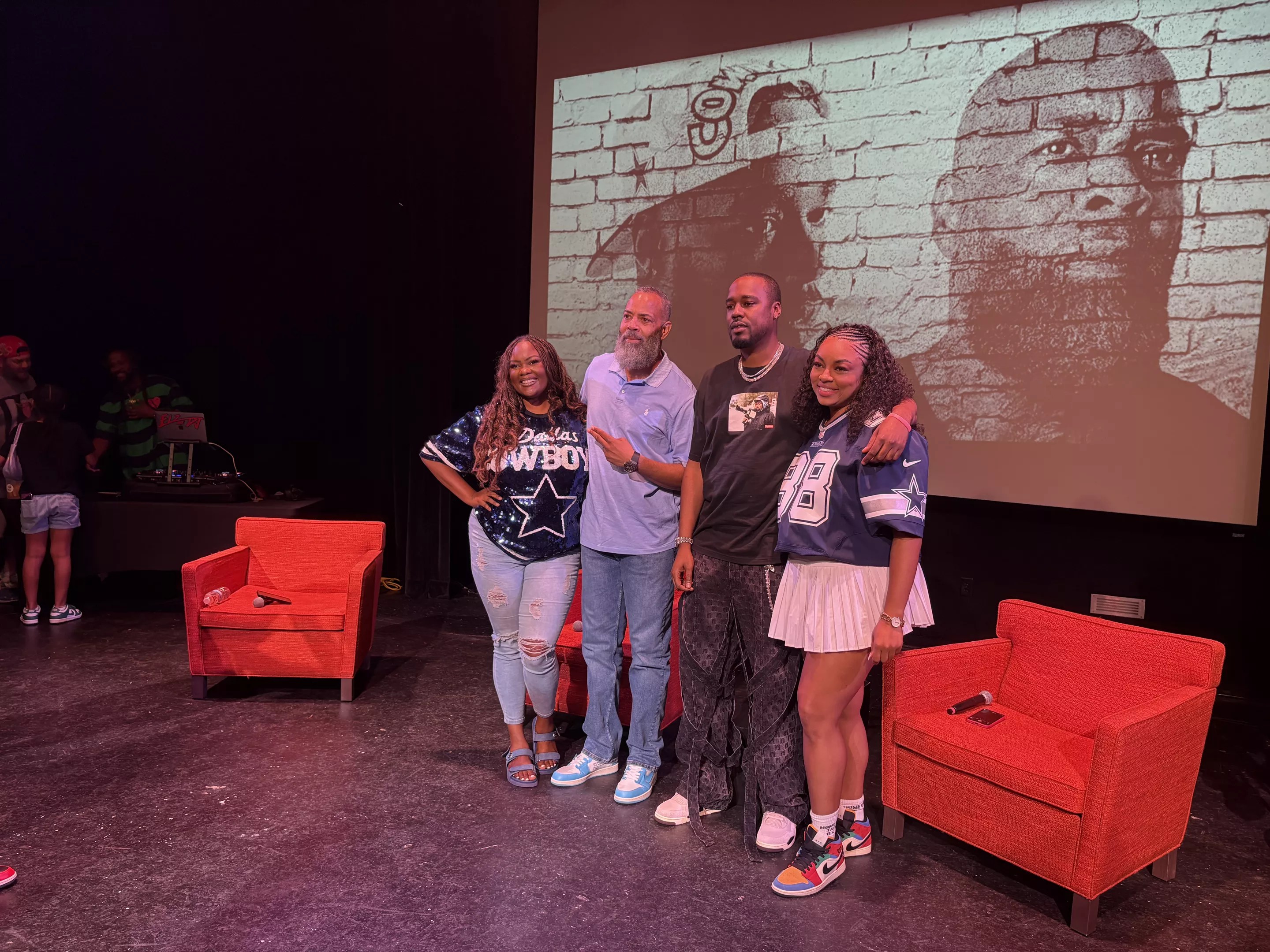 Before the panel began, there were performances by up-and-coming Dallas artists Billy White, a rapper with a poetic flow and engaging stage presence. After White, the group Boogie Land provided us with a brief lesson on the Dallas Boogie and provided a performance to the soundtrack of the dances created in Dallas that were often stolen and claimed by other cities. As they reassured us, “Jiggin’ ain’t dead,” it was clear that the audience was ready to have a dance break with them. An R&B artist named Hanani mellowed out the vibes with his smooth vocals and Trap Soul-esque tracks. Next was the charismatic rapper Qiyah Abdul, who flowed over flawless beats with a unique voice and catchy tracks filled with affirmations.