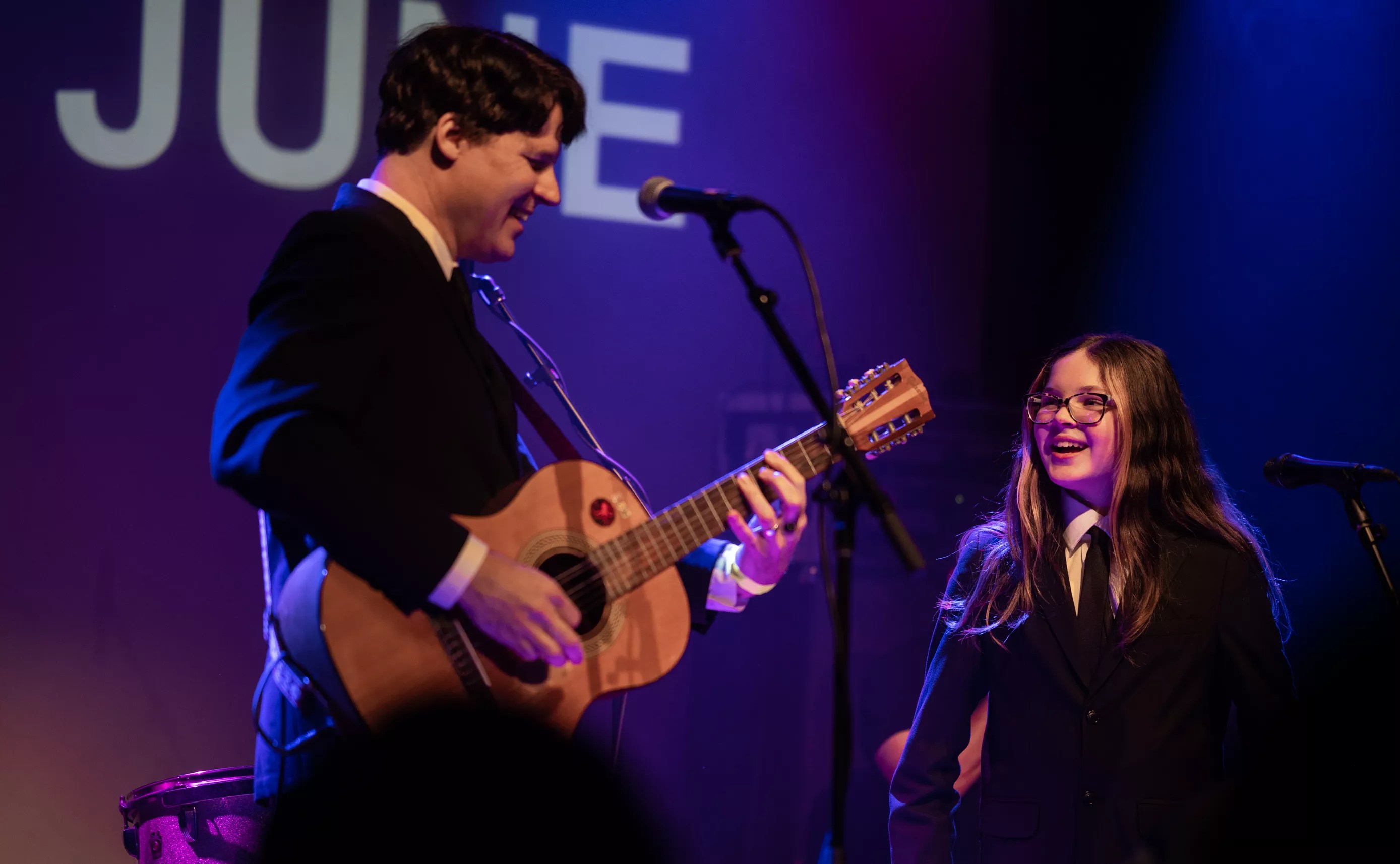 A new duo named John and June opened up the show. It’s composed of the talented and insanely busy John Dufilho and his 11-year-old daughter June. Drummer Jeff Ryan helped out on a single, muffled snare. What could have been a family-night variety show oddity turned out to be a highly polished, immensely engaging act and cuter than a basketful of puppies. If you were starting to wonder if there were any articulate, talented, engaging families left in the world, you have your answer. There was not a single person in the house who did not love these two.
