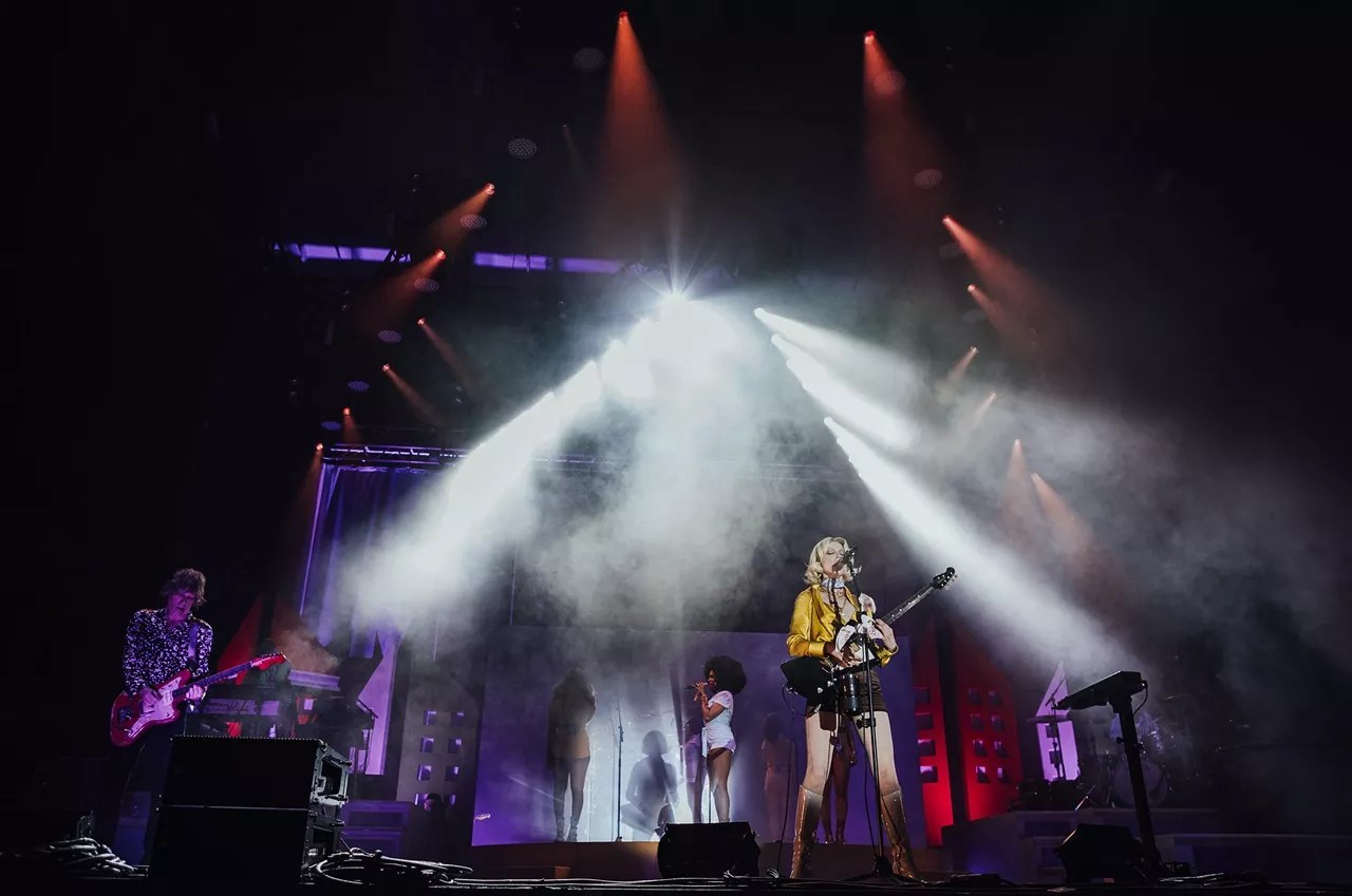 Another gem from Dallas, St. Vincent, hit the T-Mobile stage after sun down, bringing her brand of glam rock to the fest. Her fans ate it up. Performing several songs from her latest album Daddy’s Home among a downtown-style cityscape backdrop in true St. Vincent theatrical fashion, her show was complete with subtle choreography.