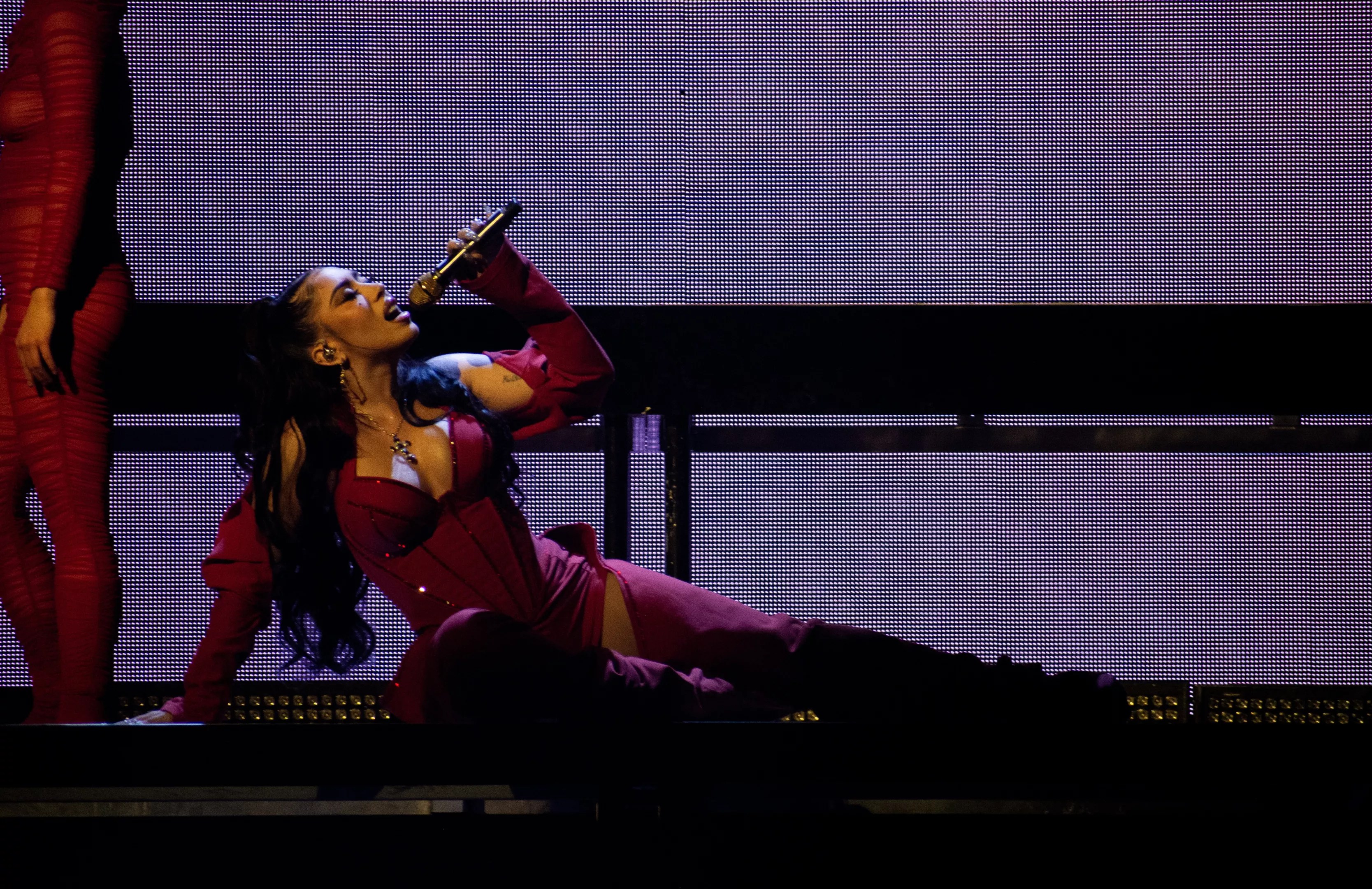 Pyrotechnics also gave the performance more optical flourish, whether through intermittent flame bursts during “Who Dat Boy” or the waterfall of sparks that fell as he belted out the post-bridge refrain of “EARFQUAKE” with chilling catharsis.