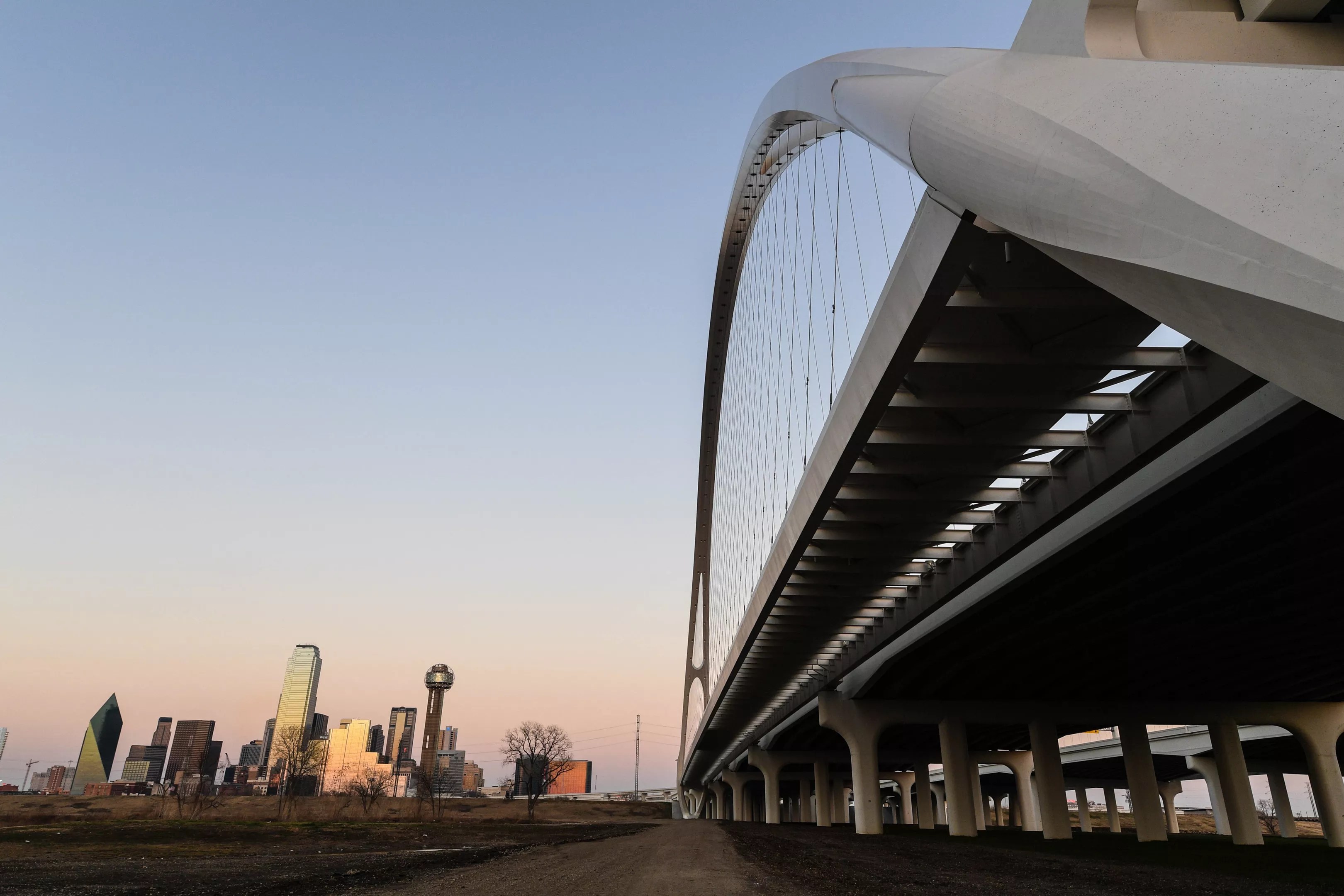 At first, there was talk of as many as six Calatrava bridges up and down the muddy Trinity. That idea quickly was trimmed to three, then to two, which exist now – a short span across the river that’s part of a longer pier-and-beam bridge, called the Margaret Hunt Hill Bridge, and the two McDonald’s arches at the sides of the I-30 bridge called Margaret McDermott.