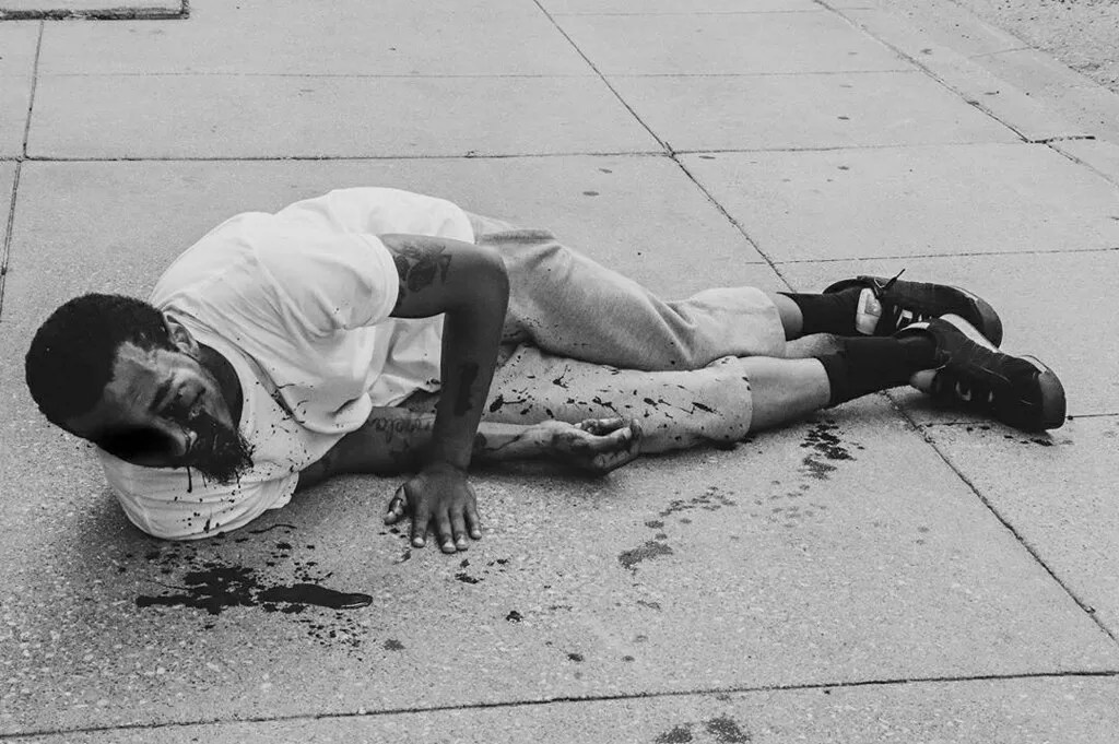 Brandon Saenz lies on a sidewalk bleeding from his eye after a Dallas police officer shot him in the face with “less-than-lethal” ammunition.