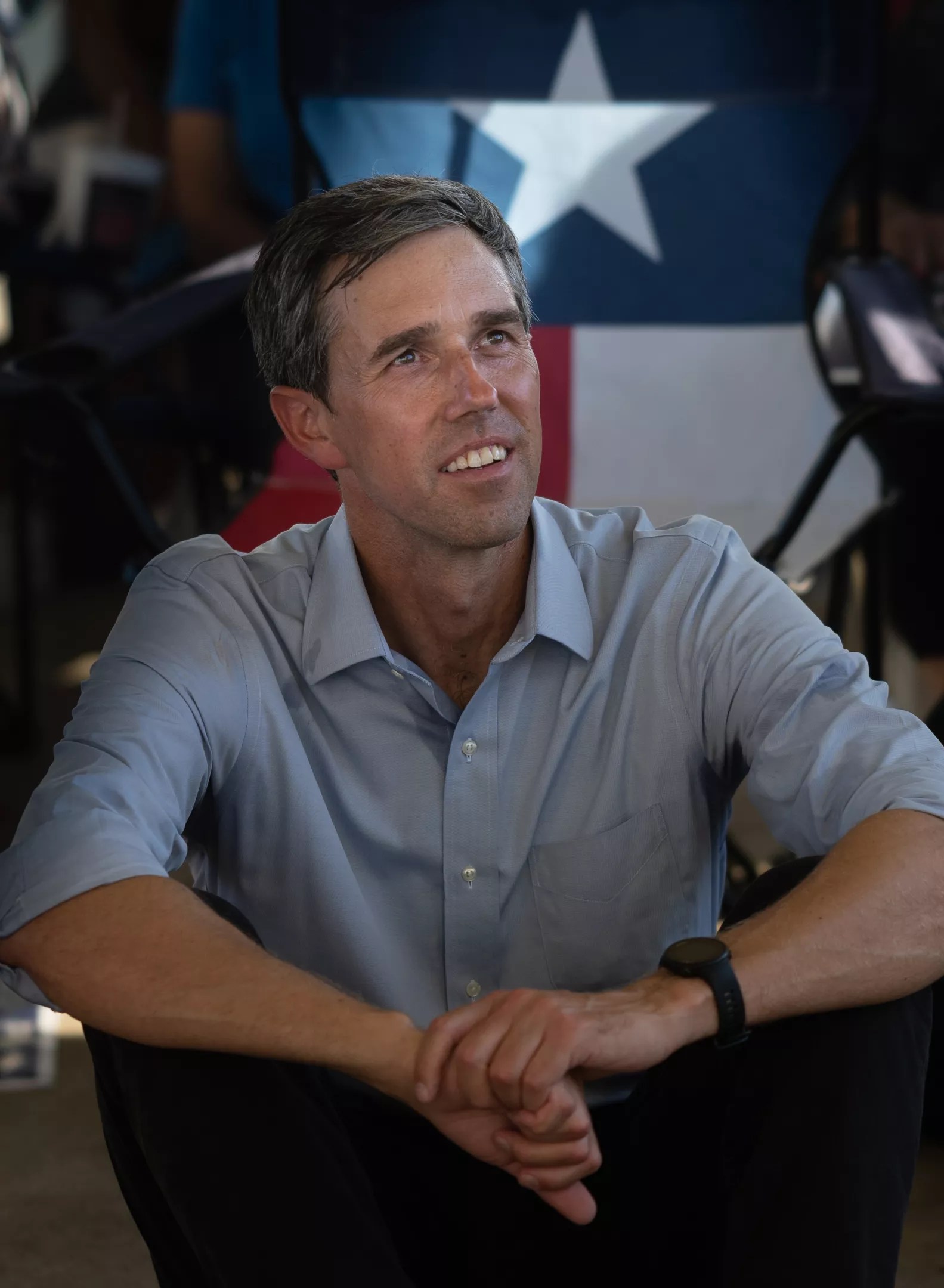 It had rained much of the day in Denton, but the balmy sunshine broke through sometime before Beto O’Rourke took the floor on Monday evening. Dozens of Texans packed the North Lakes Park pavilion, seated in lawn chairs and cross-legged on the cool concrete. They hung on the former U.S. congressman’s every word.