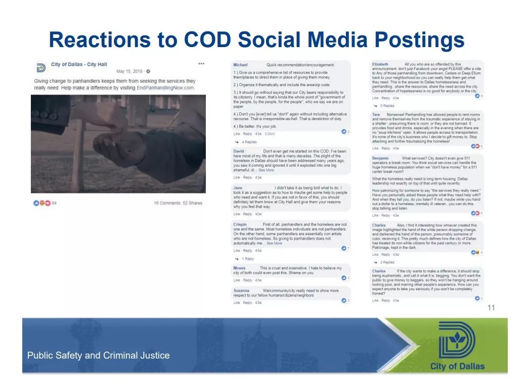 “The results today are 21 people who’ve agreed to try and work with us and try to change the panhandling life that they’ve been living. I don’t think that’s adequate results for the kind of money we’re spending.” — Sandy Greyson