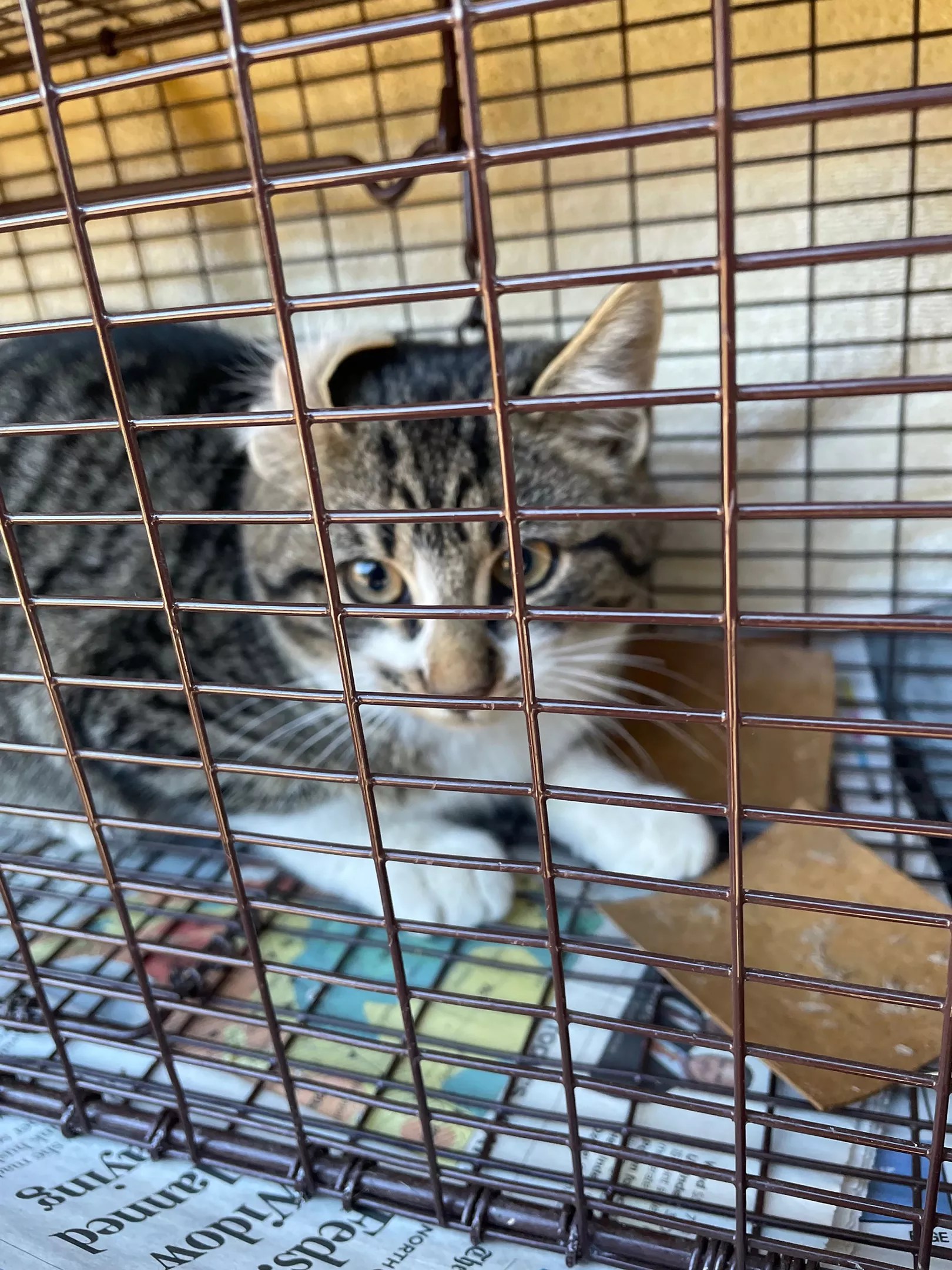 A cat that Lisa Dennis, founder of Cats in the Cliff group, was able to trap in Grand Prairie to return to Oak Cliff.