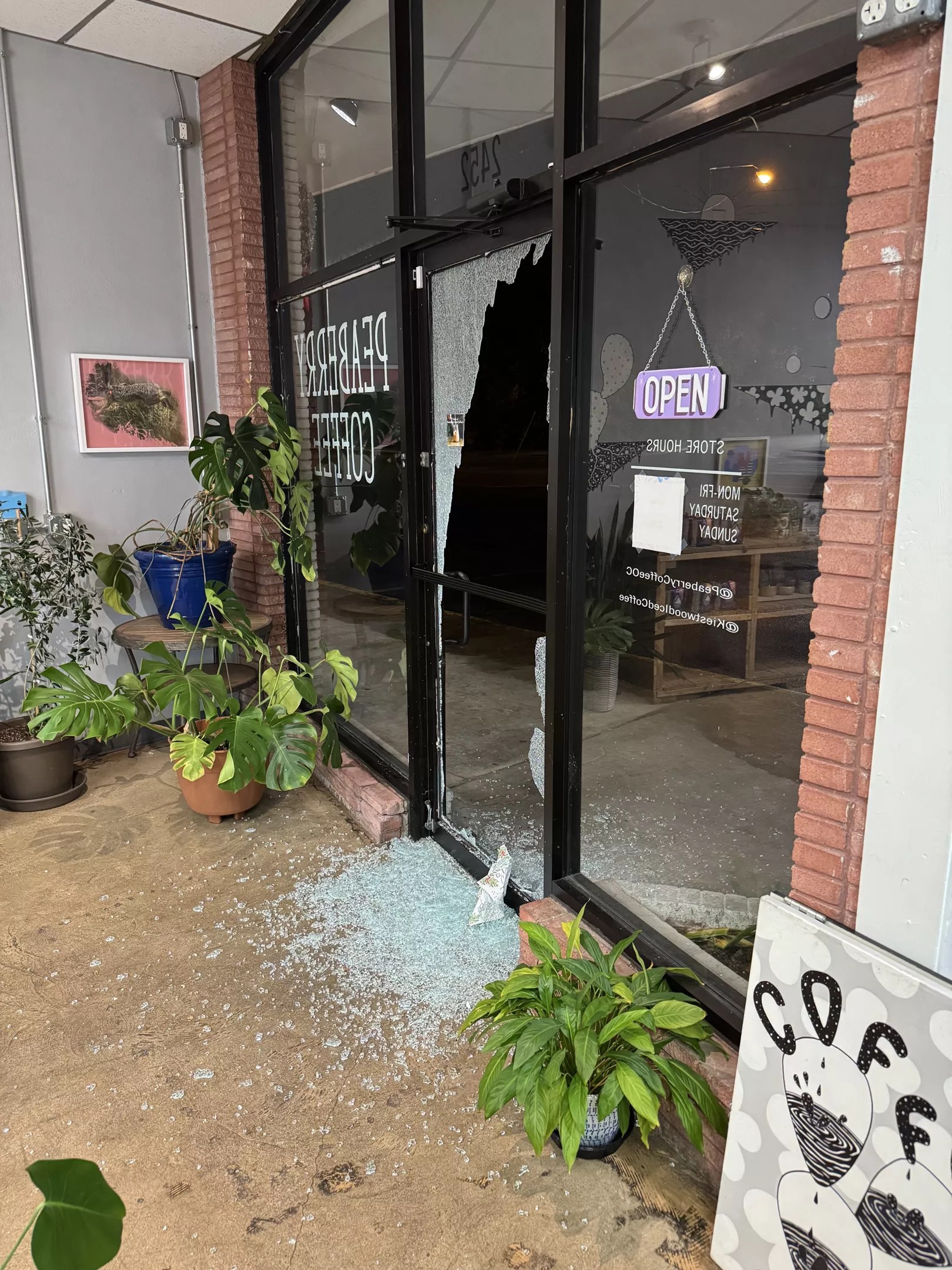 When Elijah Salazar, owner of Peaberry Coffee in the Kiestwood neighborhood of Oak Cliff, arrived at work Sunday morning, he was met with a sidewalk covered in shattered glass.