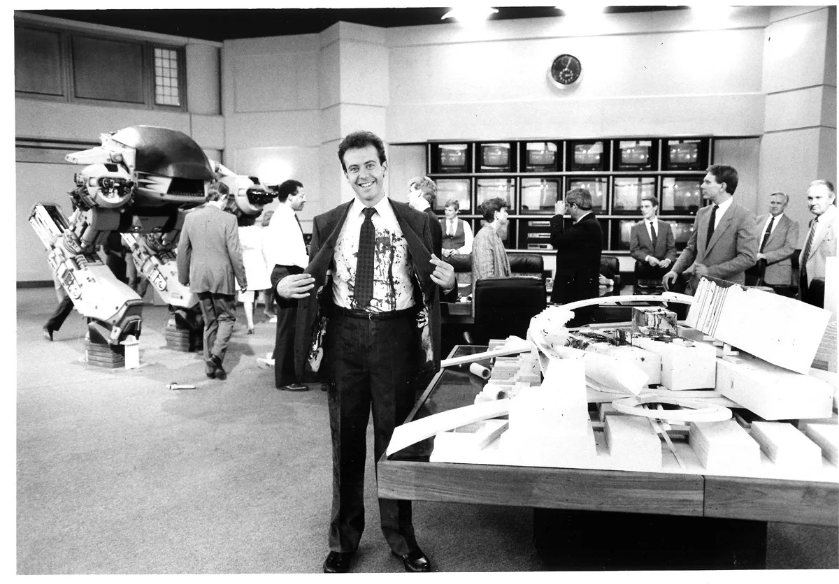 Page’s initial filming lasted only three days in a makeshift studio in downtown’s Renaissance Tower made to look like OCP’s corporate boardroom, but Verhoeven called him back to the set in Las Colinas, outfitted with an identical boardroom, so they could make his death gorier.