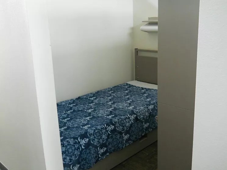 A clean bed and a private alcove are elements of a comprehensive system used by The Bridge to help people transition out of chronic homelessness.