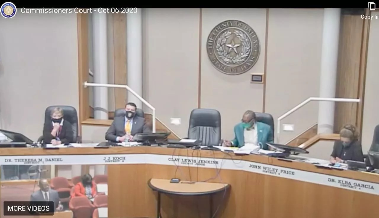With early voting starting in less than one week on Oct. 13 and the recent gift of a $15 million grant, there were a few loose ends to tidy up when the commissioners met Tuesday to discuss, among other things, logistics and details of the upcoming general election. County Judge Clay Jenkins was present via video-conference call, while commissioners Dr. Theresa Daniel, J.J. Koch, John Wiley Price and Dr. Elba Garcia were all in-person.