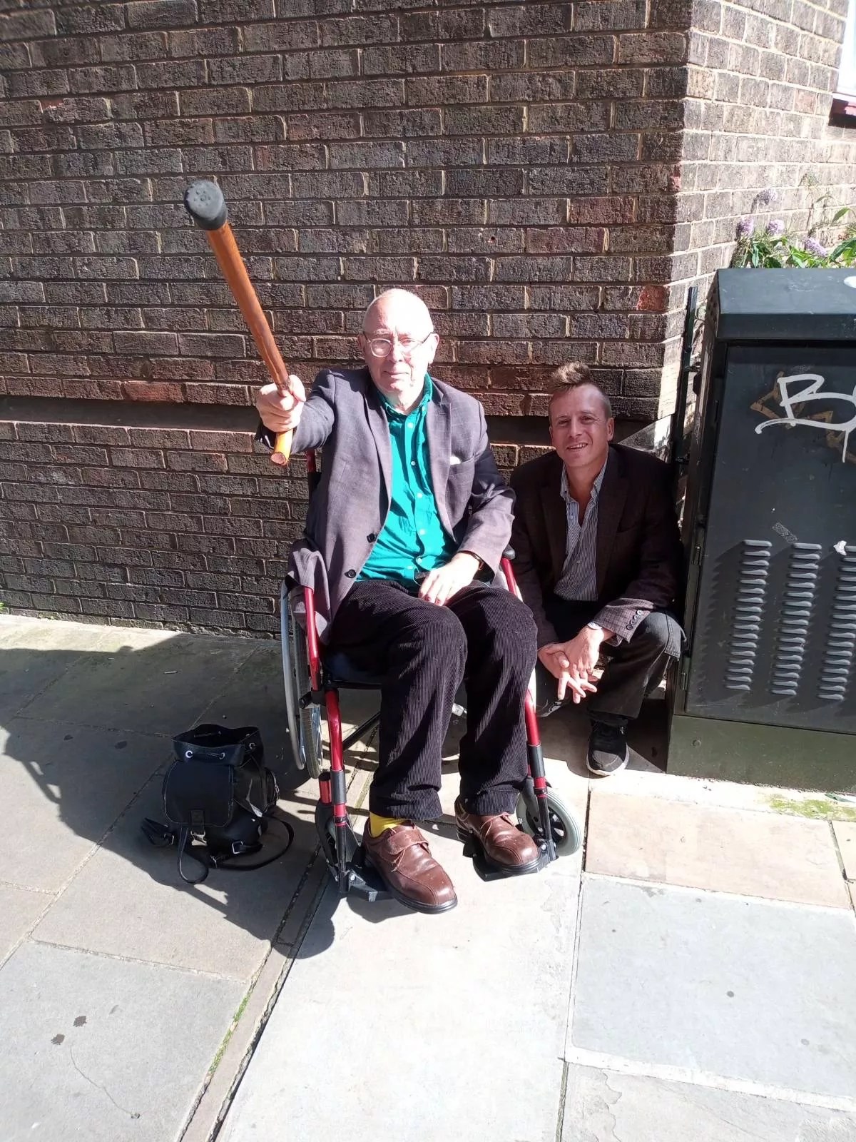 Barrett Brown poses with anarchist Ian Bone, founder of the Class War group, in London at the Anarchist Book Fair.