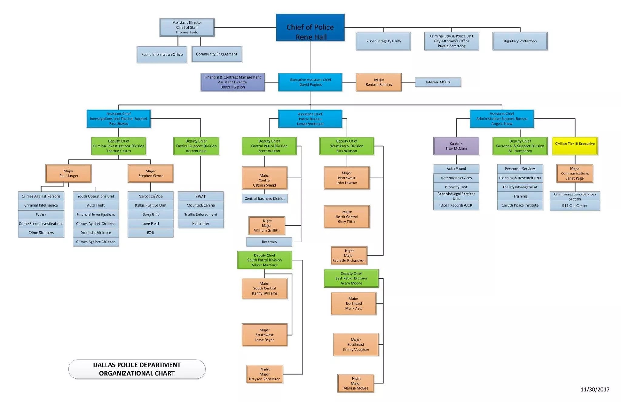 The Dallas Police Department’s new command structure.
