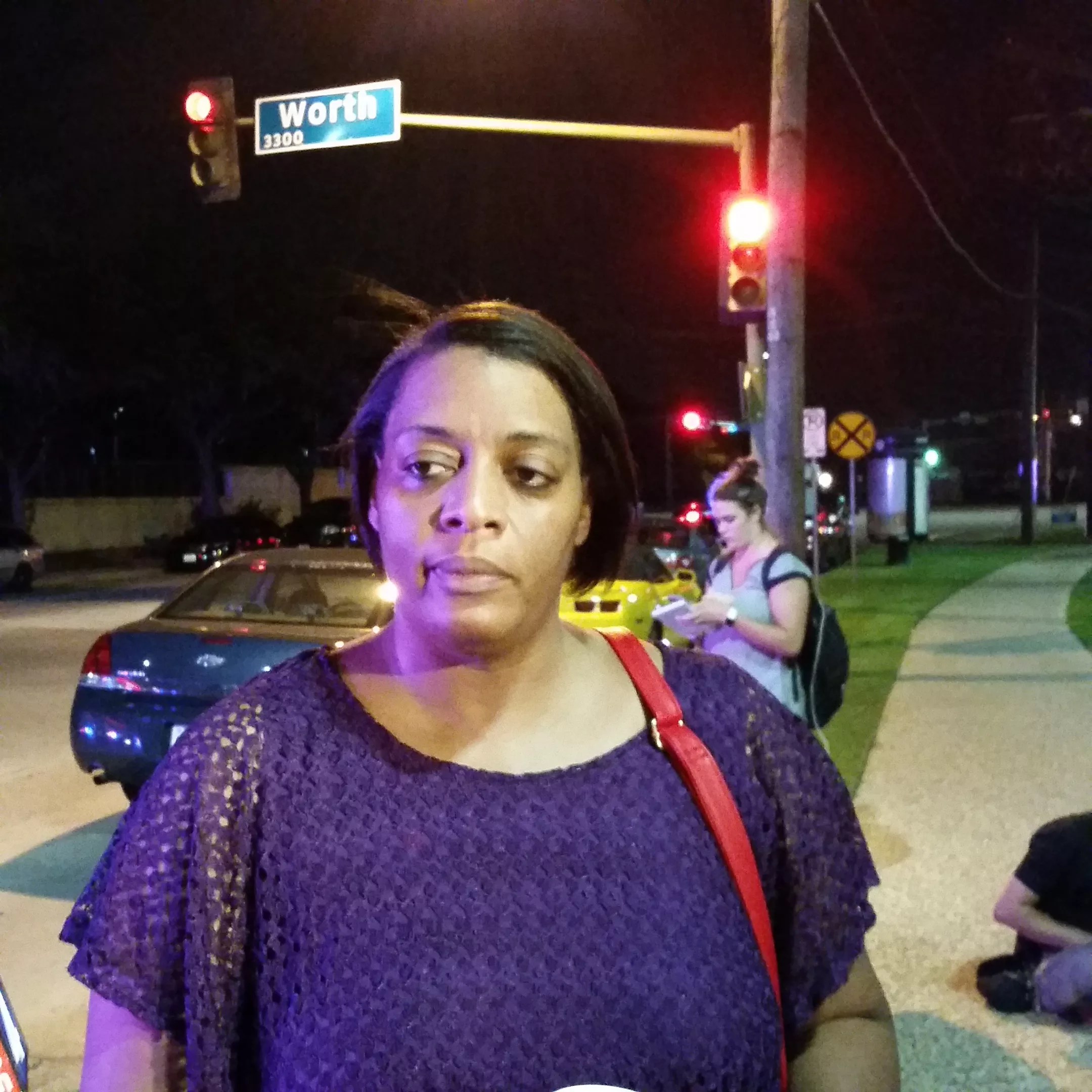 Theresa Williams awaits word on her sister’s condition outside Baylor hospital.