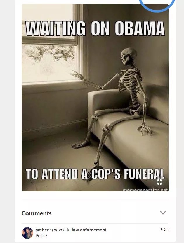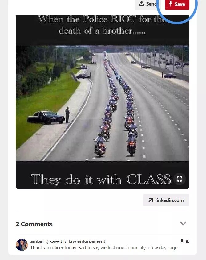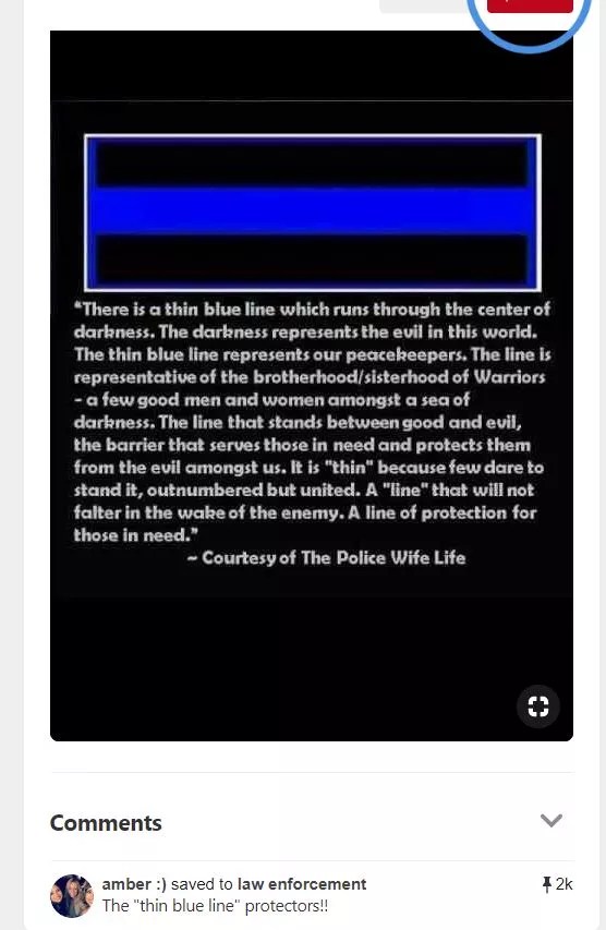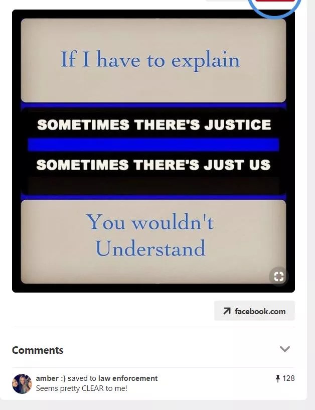 Given the circumstances and its content, the law enforcement board is the most interesting, but there are other pins of note scattered throughout the account’s public posts. Many reflect the “civilians just don’t get it” attitude that permeates the online spaces in which law enforcement officers gather, like Thee Rant, PoliceOne and pro-police groups on Facebook.