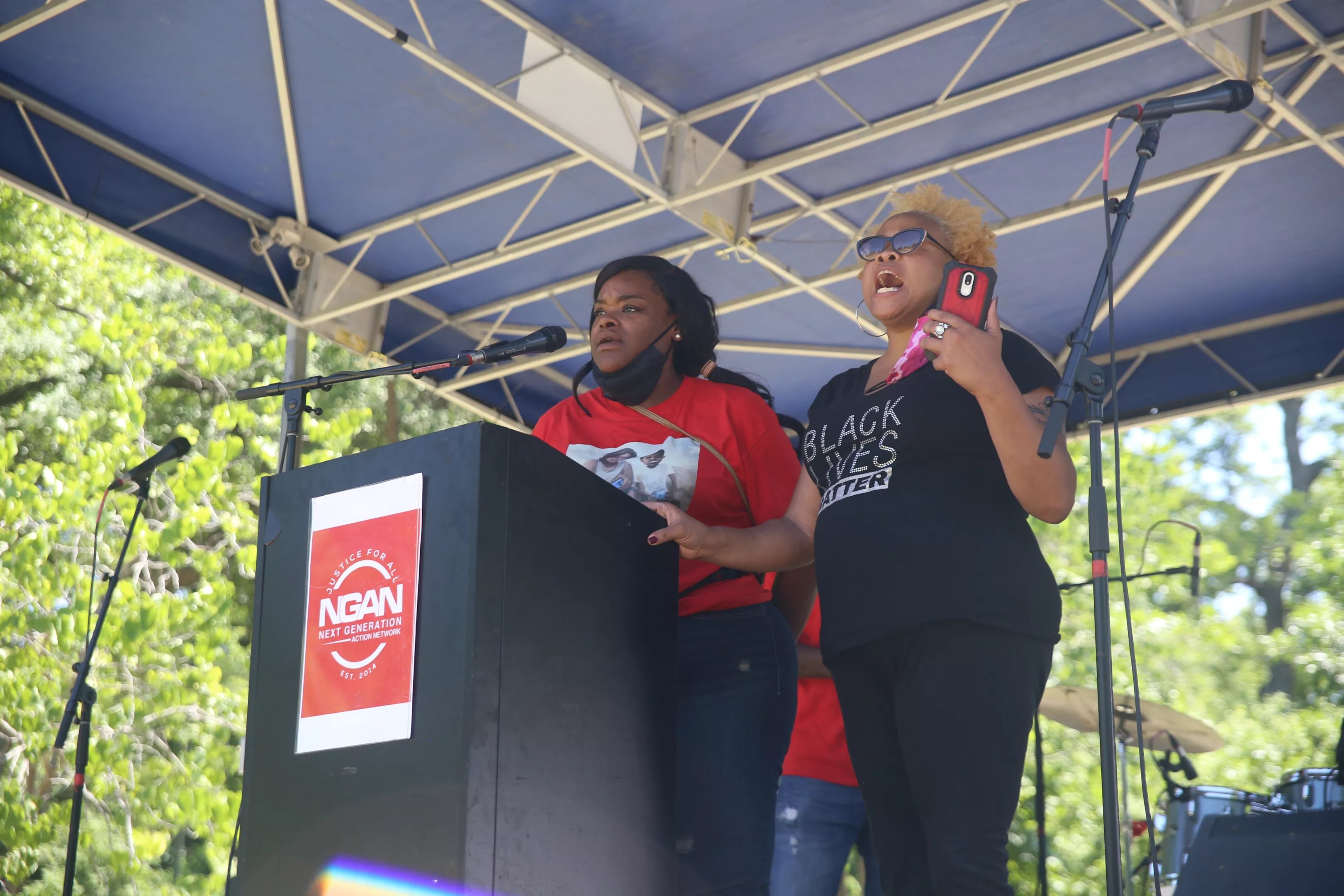 Even in the blistering heat, people turned out in Reverchon Park on Saturday for the 16th day of protests in Dallas against police brutality. The event, organized by local nonprofit Next Generation Action Network, was dubbed a Black State of Emergency.
