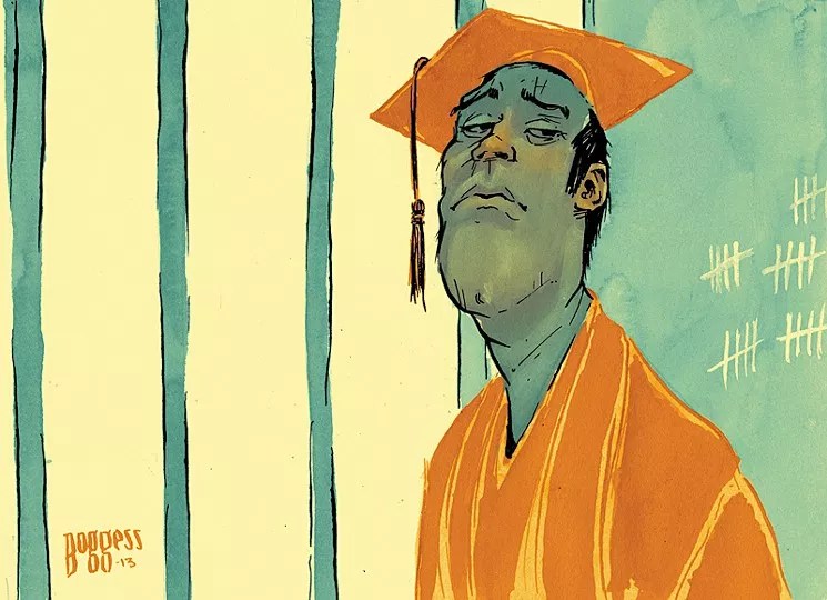 Since 2007, Texas Appleseed, a social advocacy group, has been documenting the high correlation between children who get kicked out of school and children who become young incarcerated adults. Not everybody who gets sent to prison one time goes back a second and third time, but when you couple incarceration with illiteracy and then also factor in school drop-out rates, the prospects are pretty terrible. Texas Appleseed reports that 80 percent of the people in Texas prisons are school drop-outs.