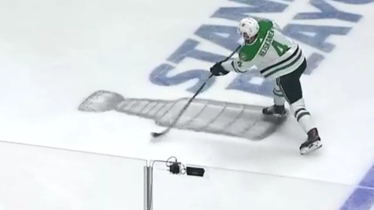 Dallas Stars defenseman Miro Heiskanen unleashes his second goal against the Predators in Game 1.