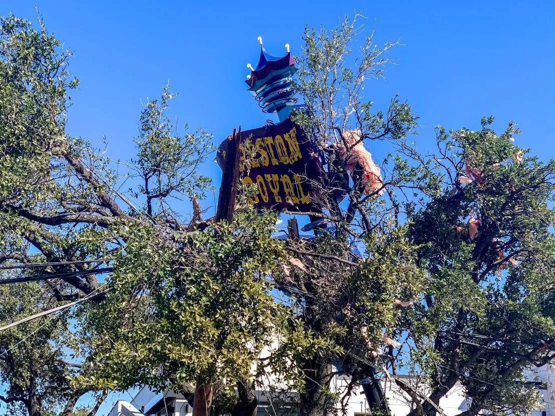 In the Preston Royal shopping center, the tornado tore roofs from buildings, smashed through brick walls and shattered plate-glass windows. On Monday morning, a tangle of downed limbs and debris littered the shopping center’s parking lot.